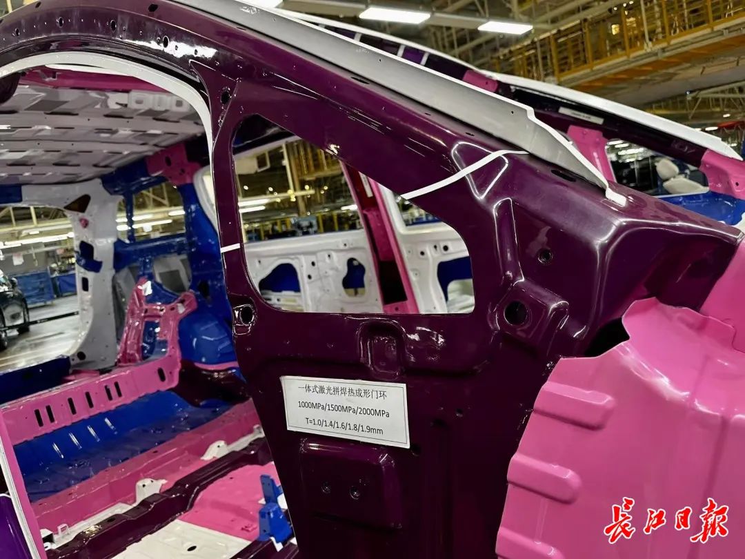 ▲岚图的“独门绝技”——一体式激光拼焊热成形门环。长江日报记者 汪甦 摄