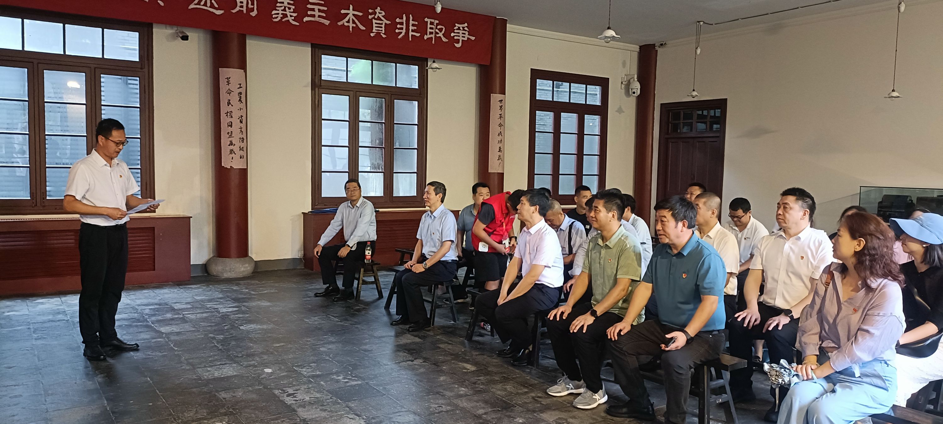 在中共五大会议纪念馆,通航建投支部副书记以第一届中央监察委员会的诞生为切入点,讲授了廉政党课,号召全体党员坚持不懈以习近平新时代中国特色社会主义思想凝心铸魂,以学正风,弘扬清廉之风,常怀律己之心,常思贪欲之害,筑牢思想防线,坚守法纪红线。