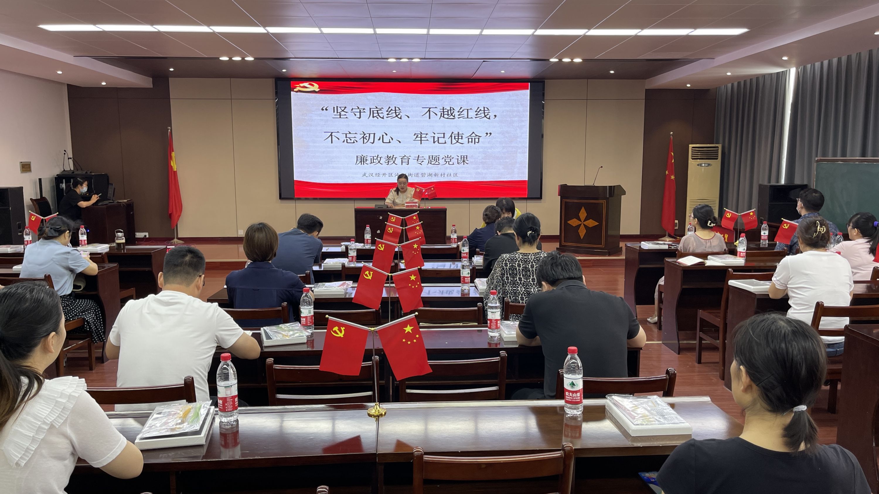 全体党员集中观看警示教育片,碧湖新村社区书记以“坚守底线、不越红线、不忘初心、牢记使命”为主题,从“思想境界”“道德修养”“家庭廉政”三方面为全体干部讲授廉政党课。