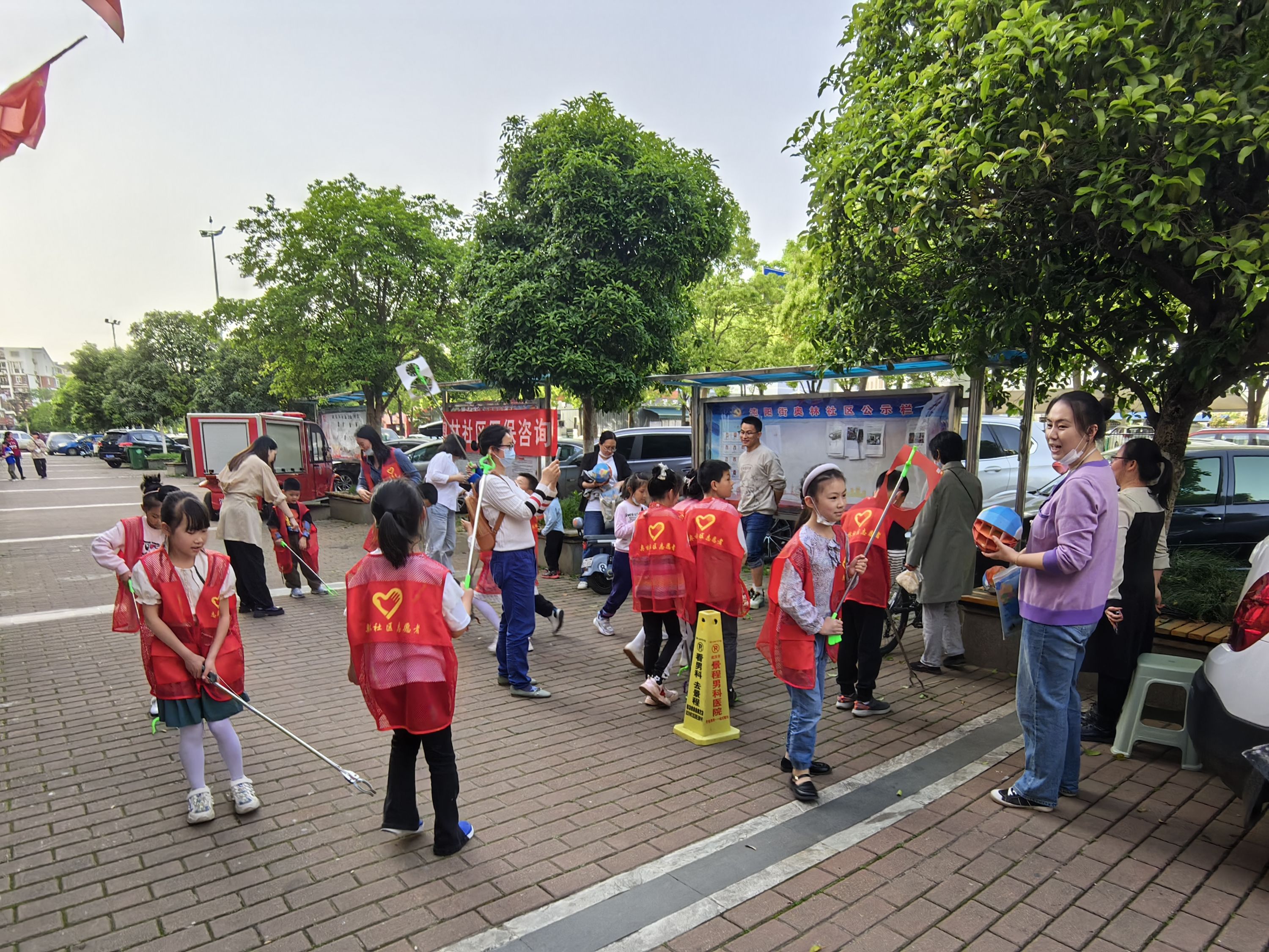 当天,小朋友们化身为小小志愿者对小区绿化带开展环境卫生整治。大家拿着夹子,垃圾袋,将绿化带里的垃圾都清理得干干净净。