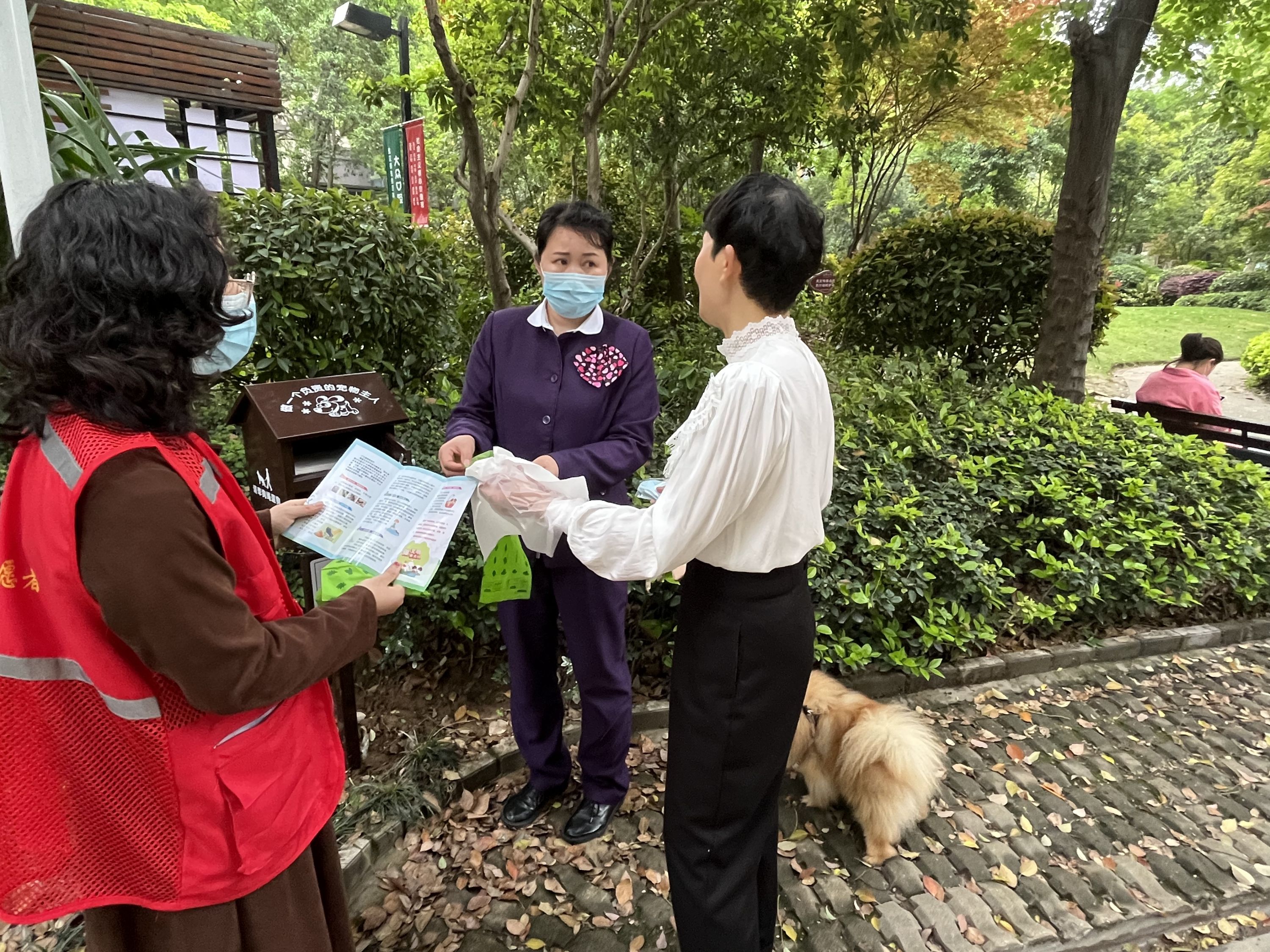 活动中,下沉党员、志愿者向居民发放《规范养犬行为,建立和谐社区》宣传单,现场为养犬人普及养犬知识、解读犬类行为,提供犬证办理指导等服务,为居民发放环保拾便袋,讲解犬类粪便对生活环境产生的不良影响,倡导外出遛犬时准备好卫生工具,保持周边环境的清洁卫生。