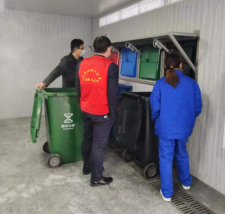 随着居住职工增多,小区内生活垃圾也日益增多,社区垃圾屋无法满足生活垃圾的日常存放,严重影响了职工的居住环境。社区党总支与绿岛物业积极争取上级部门支持,将仅10平方米的小型垃圾屋改建成为70余平方米的垃圾站。垃圾站建成以后,垃圾桶摆放有序,垃圾分类投放得当,杀菌除臭灭蝇设施完备、排水排风清洗管理等功能区设置合理,受到职工广泛好评。