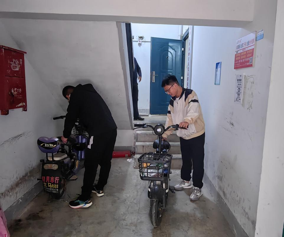 安全工作小组成员分为两组,第一组成员对居民楼栋消防通道占用情况、灭火器是否完整且有效、电动自行车违规停放楼道、私拉乱接电线“飞线充电”等现象情况进行排查,针对发现的隐患问题,工作人员耐心劝说居民自行搬离,并宣传防火、灭火及逃生自救知识,现身说法提高居民群众消防安全防范意识。