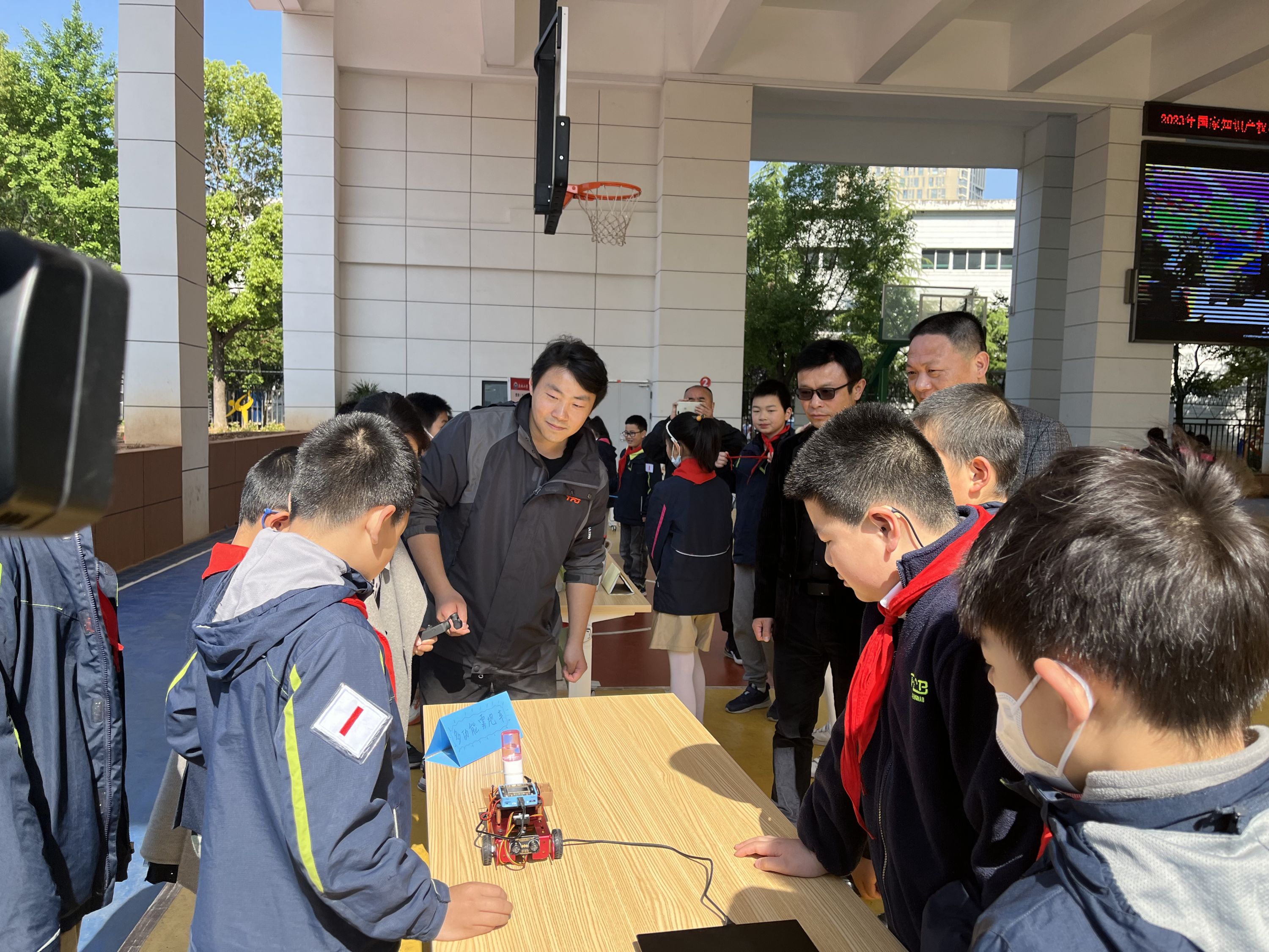 “什么是商标,版权是什么?去哪里申请专利呢……”在创新创意作品展示区,面对学生们的提问,区科创局工作人员开展知识产权科普、解答疑惑。