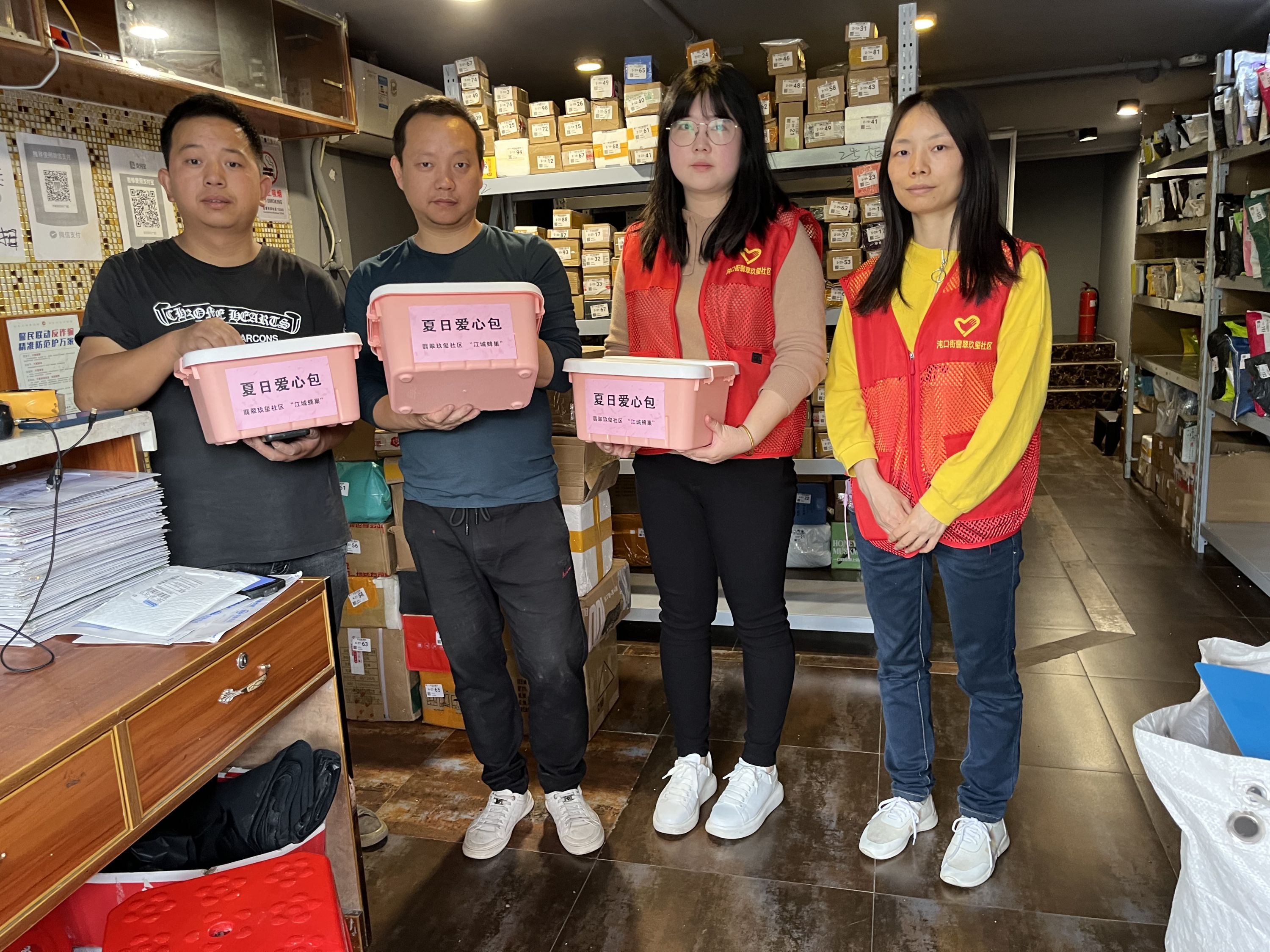 社区以发放爱心包、走访问询的形式向他们送上节日的问候与关怀。“李师傅,天气马上热起来了,给您送上夏日大礼包,这里面有防晒冰袖、驱蚊液、毛巾……平时再忙也要注意休息,提前祝您劳动节快乐。”社区副书记叮嘱道。