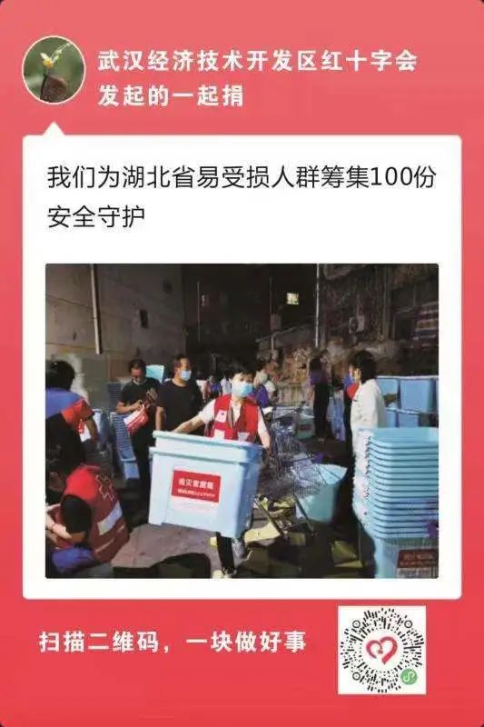 5月8日,是全国红十字系统人道公益日,由中国红十字会总会发起,中国红十字基金会负责综合协调和组织,联合腾讯公益等互联网公募平台合作开设活动专场,采取省市区三级红十字会联动方式,组织爱心企业、社会组织、爱心人士通过线上募捐(金额不限),积聚社会资源。武汉经开区红十字会结合实际,选择了“红十字博爱家园”赈济项目组织募捐,所得善款将全部汇入中国红十字基金会账户,用于我区困难帮扶、社区治理、防灾减灾、乡村振兴等,并适时向社会公示。为了点亮爱的灯火,伸出您的援手,请微信扫描海报右下角二维码进入腾讯公益。让我们献出爱心,一起捐吧!