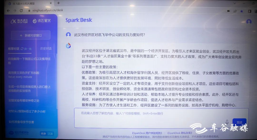 作为科大讯飞合肥总部主会场之外的四大分会场之一,位于武汉经开区的科大讯飞华中总部,发布并演示讯飞星火认知大模型智慧教育应用成果。
