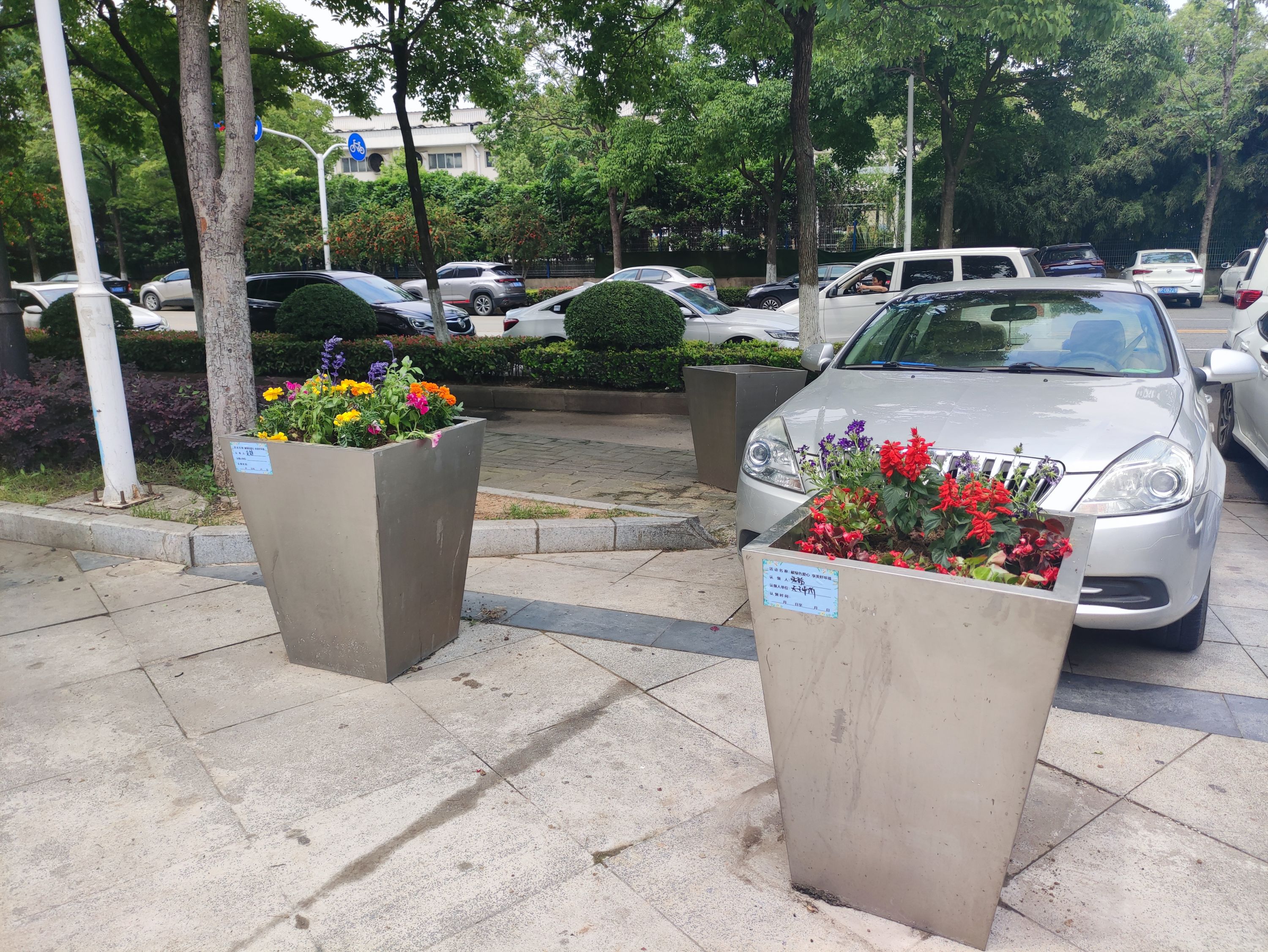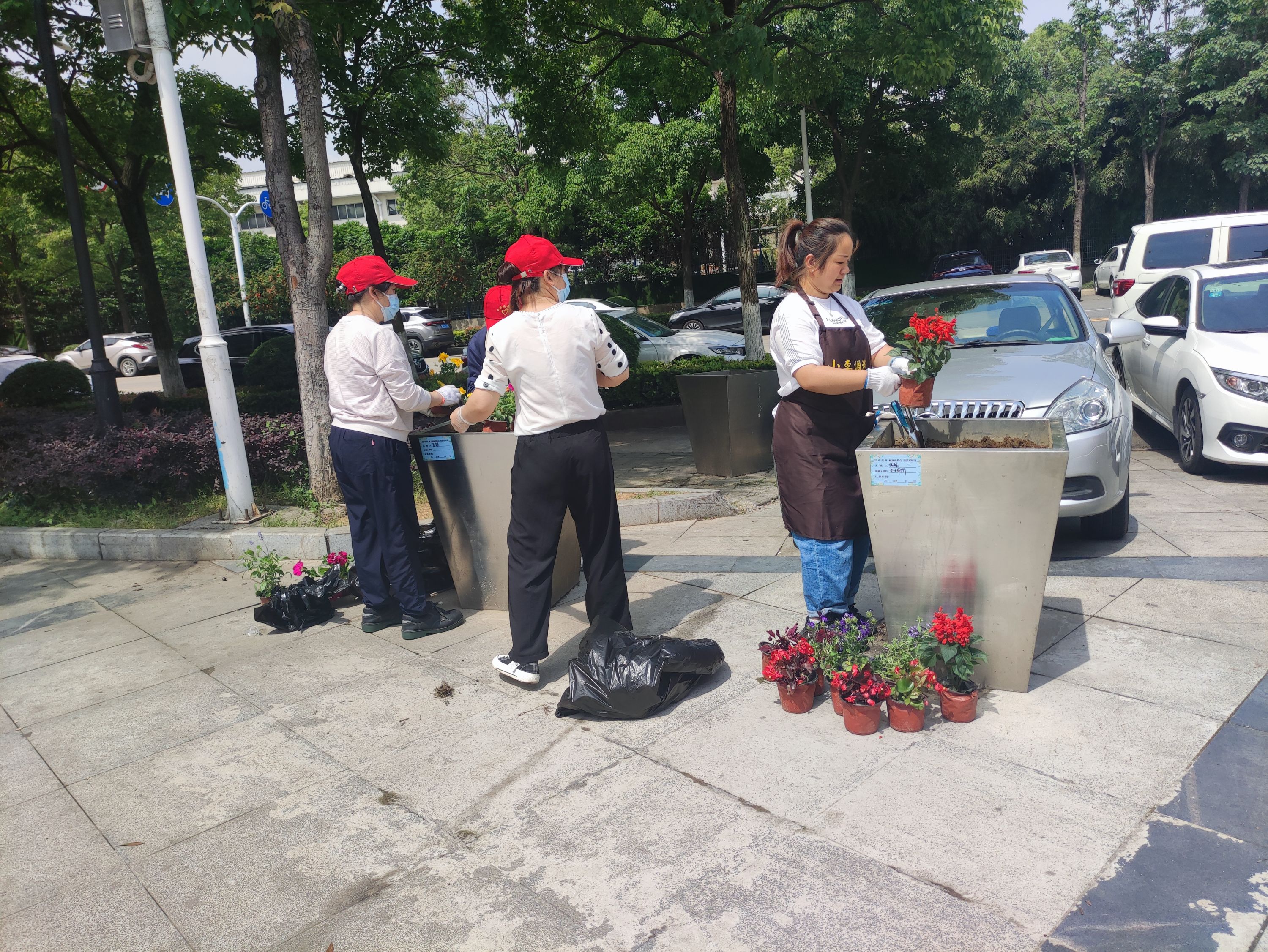 辖区内40余名职工、居民,志愿者们参与活动,他们两人一组,相互协作,手持铲子、水桶等工具,除草、翻土、填土、浇水,分工明确,配合默契。经过数小时的共同努力,一棵棵花苗被栽下,一抹抹新绿呈现在眼前,大家纷纷拿出认领牌,写下寄语、签上名字,给花坛贴上了专属标识。