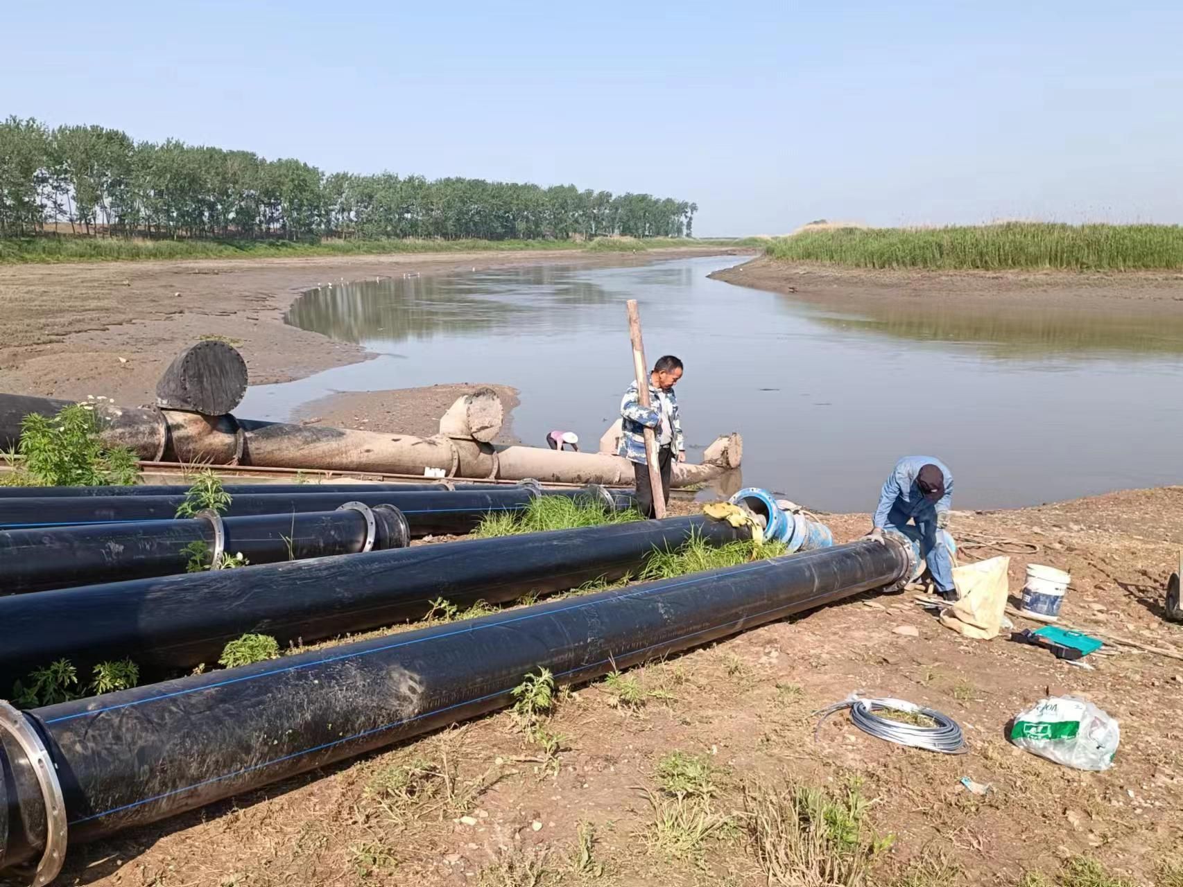 “我们总共架设了8台潜水泵,布设了300余米输水管道,通过蓄、引、抽、提,增加内部河道蓄水量。”农场公司相关负责人介绍道。目前,从通顺河提水输往主干沟渠的水量约40万方,基本满足了辖区万亩水产养殖和在田作物该生产阶段的用水需求。