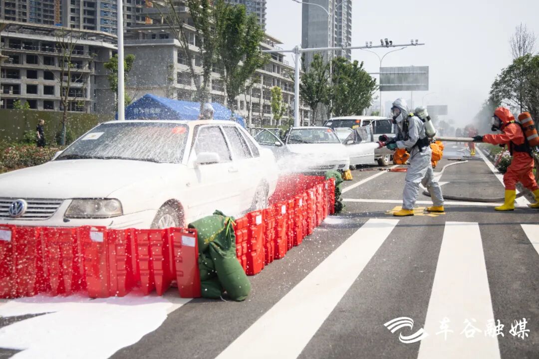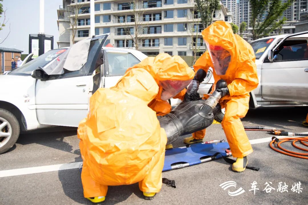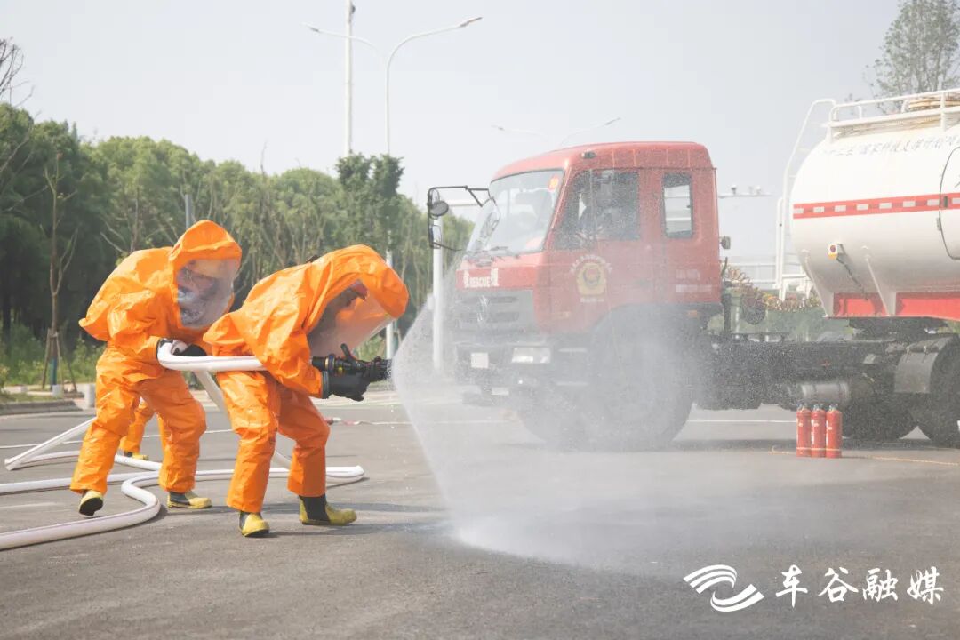 经过近40分钟的奋战,所有“被困人员”成功解救,新能源汽车“火灾”被扑灭,槽罐车阀门顺利关闭,有效防止了危化品泄漏带来的二次危害。