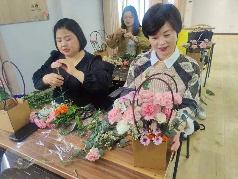 车谷融媒5月14日讯 5月10日,沌阳街道永久社区妇联联合武汉楚馨社会工作服务中心组织开展了“花香送祝福,礼赞母亲节”插花主题活动,邀请40名辖区妈妈共享“花样”美好时光。