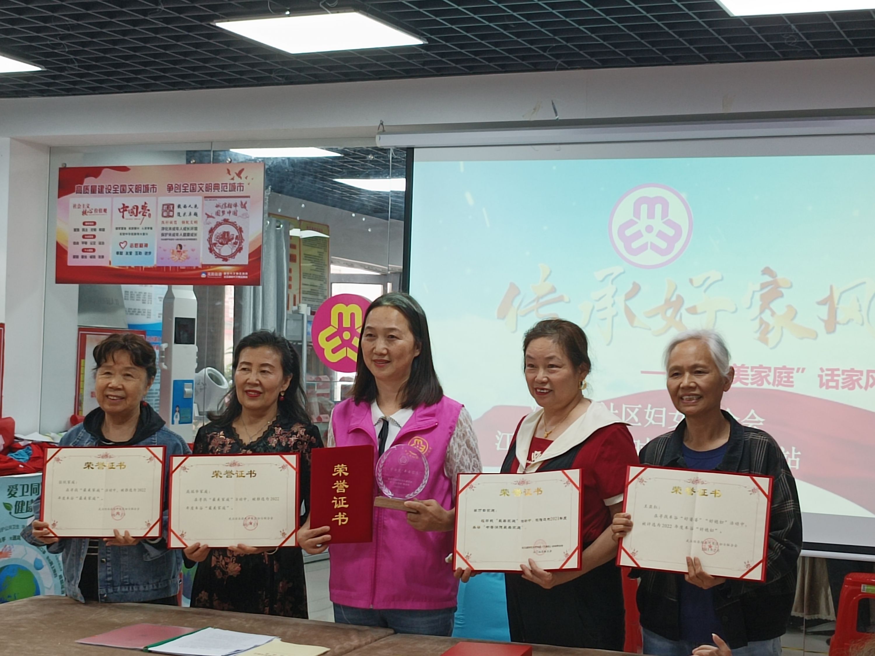 活动现场,社区妇联主席为5户“最美家庭”颁发荣誉证书。获奖家庭进行家风故事分享交流。他们之中有孝善敬老、夫妻恩爱的家庭,有乐于助人、热心公益的家庭,有教子有方、家庭和睦的家庭,也有热爱环保、爱岗敬业的家庭。获奖者声情并茂地讲述着自己家善美家风、和睦邻里、乐于奉献、热心公益的故事,获得了在场居民们的热烈掌声。