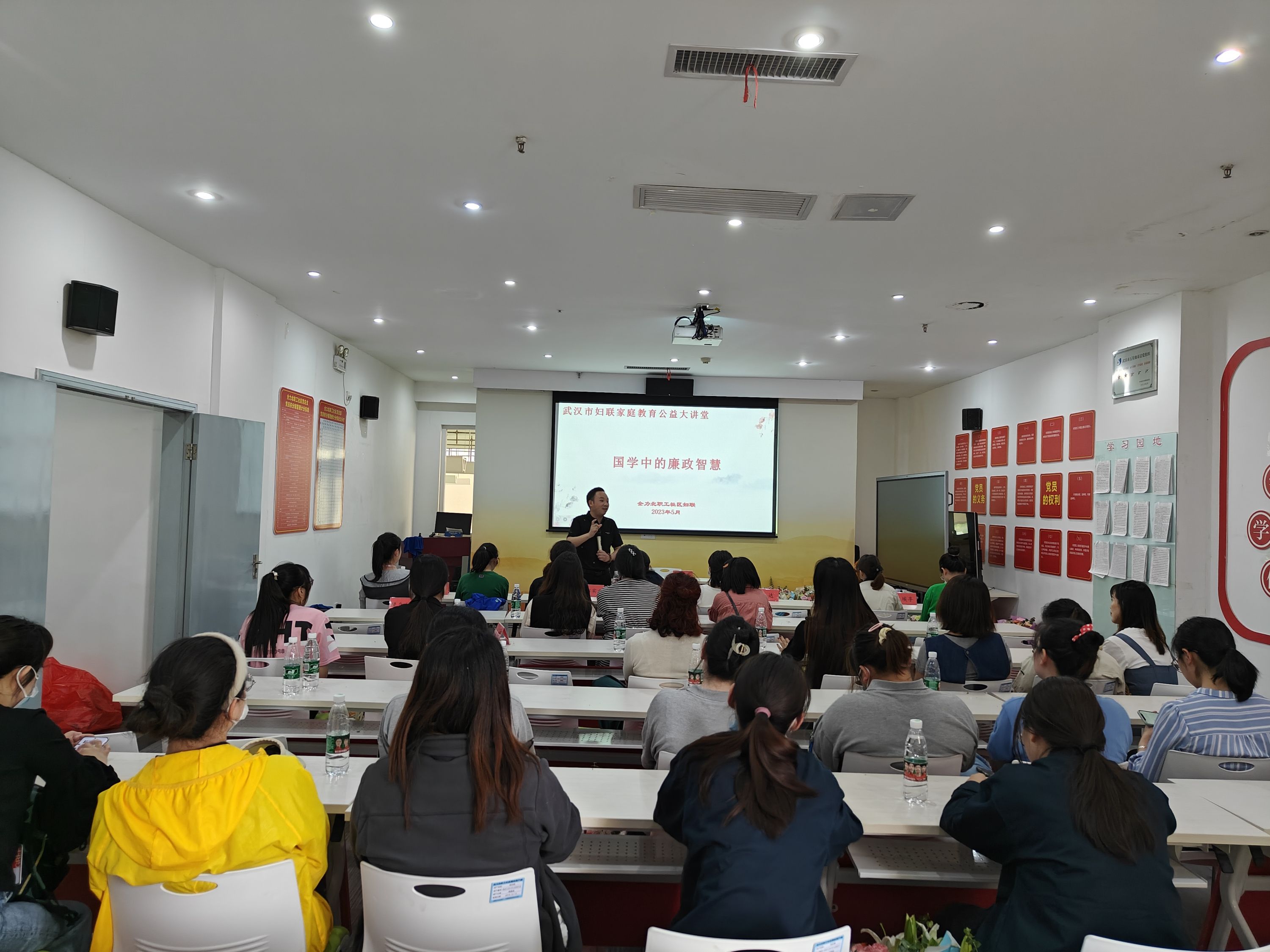 车谷融媒5月15日讯 近日,武汉市妇联家庭教育公益大讲堂走进沌阳街道全力北职工社区,向妇女们讲授国学中的廉政智慧。格力电器、武汉凌达、东实实业、航天瑞奇等11家辖区企业的40余名妇女干部参与学习活动。