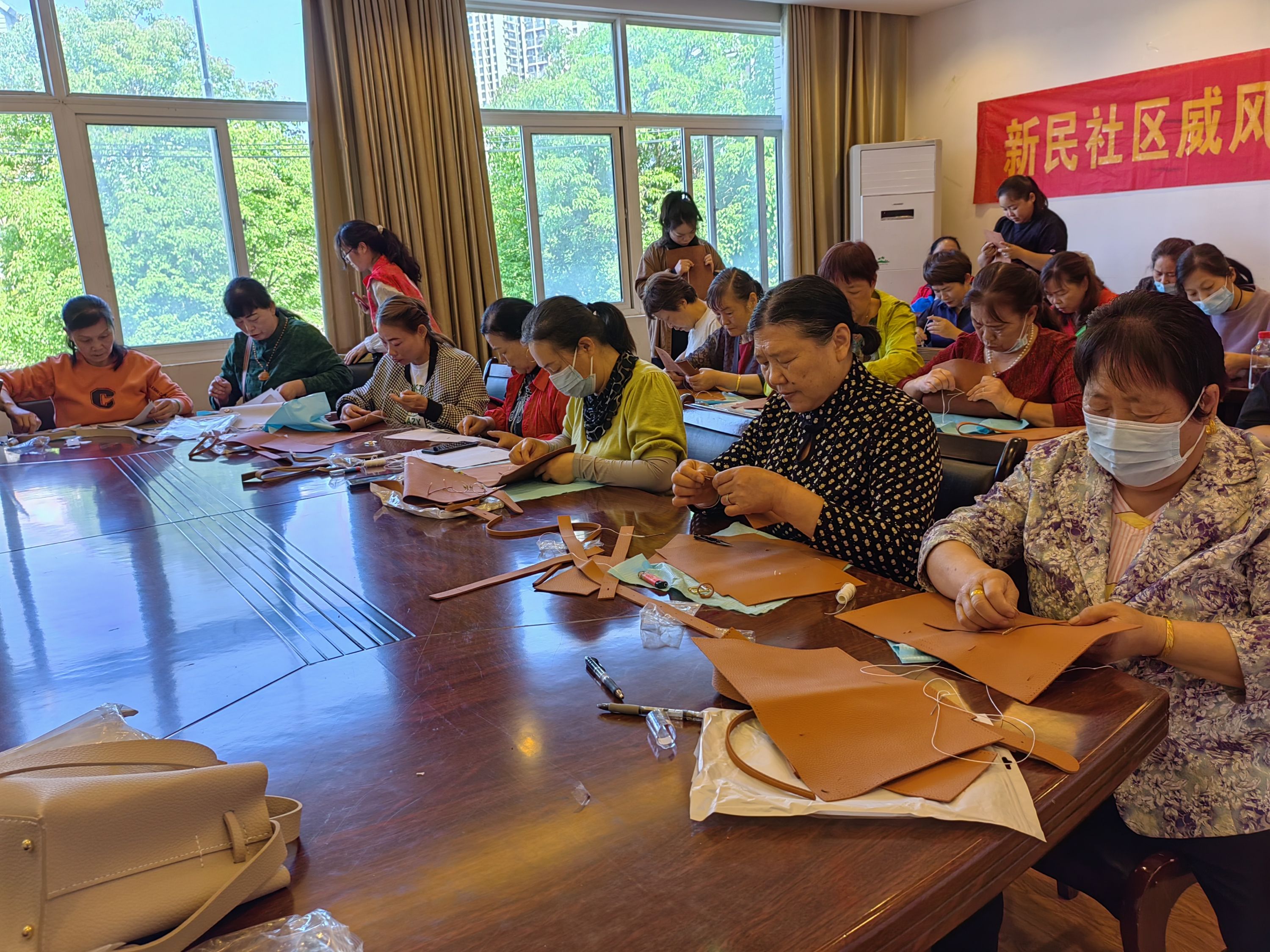 活动现场,手工老师向大家详细介绍了手工包制作流程。在制作过程中,社区居民们热烈交流讨论针法,大家互相搭档,穿针线,找定位,上下来回缝补,展现了自己的独特手工活和无限创意。