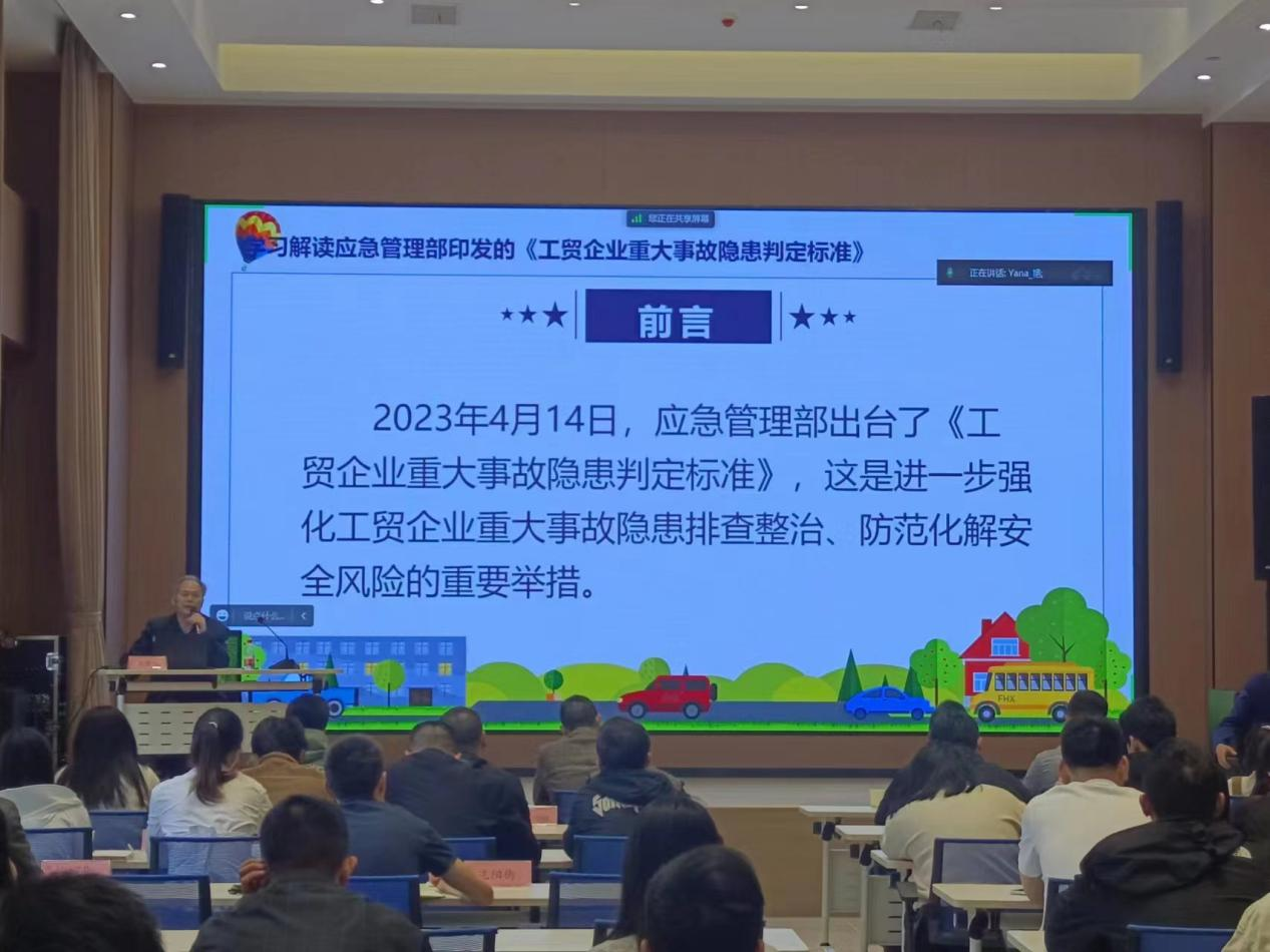 此次培训详细讲解了新版工贸企业重大事故隐患判定标准和判定方法,通过分析工贸行业安全生产出现的新形势新问题,提出特殊危险作业、粉尘涉爆、危险化学品存储与使用等危险有害因素辨识方法和防范措施。此次培训还重点阐释和解读了《湖北省安全生产条例》,包括修订背景和重要意义,从形成安全生产监管合力、健全全员安全生产责任制、强化安全生产保障能力、加强安全生产监管执法等方面,以及行政执法实务法律适用。