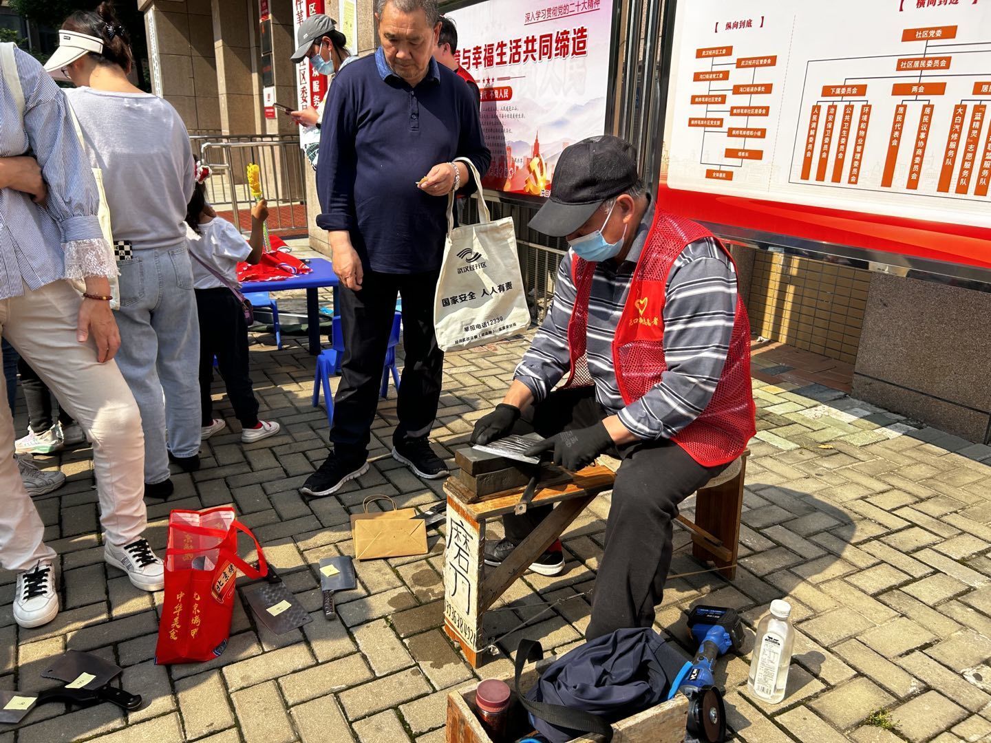 活动中,社区退休居民们组建爱心便民队,为居民提供理发、磨刀、衣物缝补等爱心便民服务。缝补项目是个有着20多年经验的老手艺人,手艺精湛。居民们都来赶“闹忙”,把家里需要缝补的衣服、物件都带过来“拯救”。磨刀项目也很受大家欢迎,大家都表示:“自己磨刀不仅费时费力,而且很难磨得锋利,现在外面也找不到地方磨,现在社区就能磨刀了,真是太方便!”