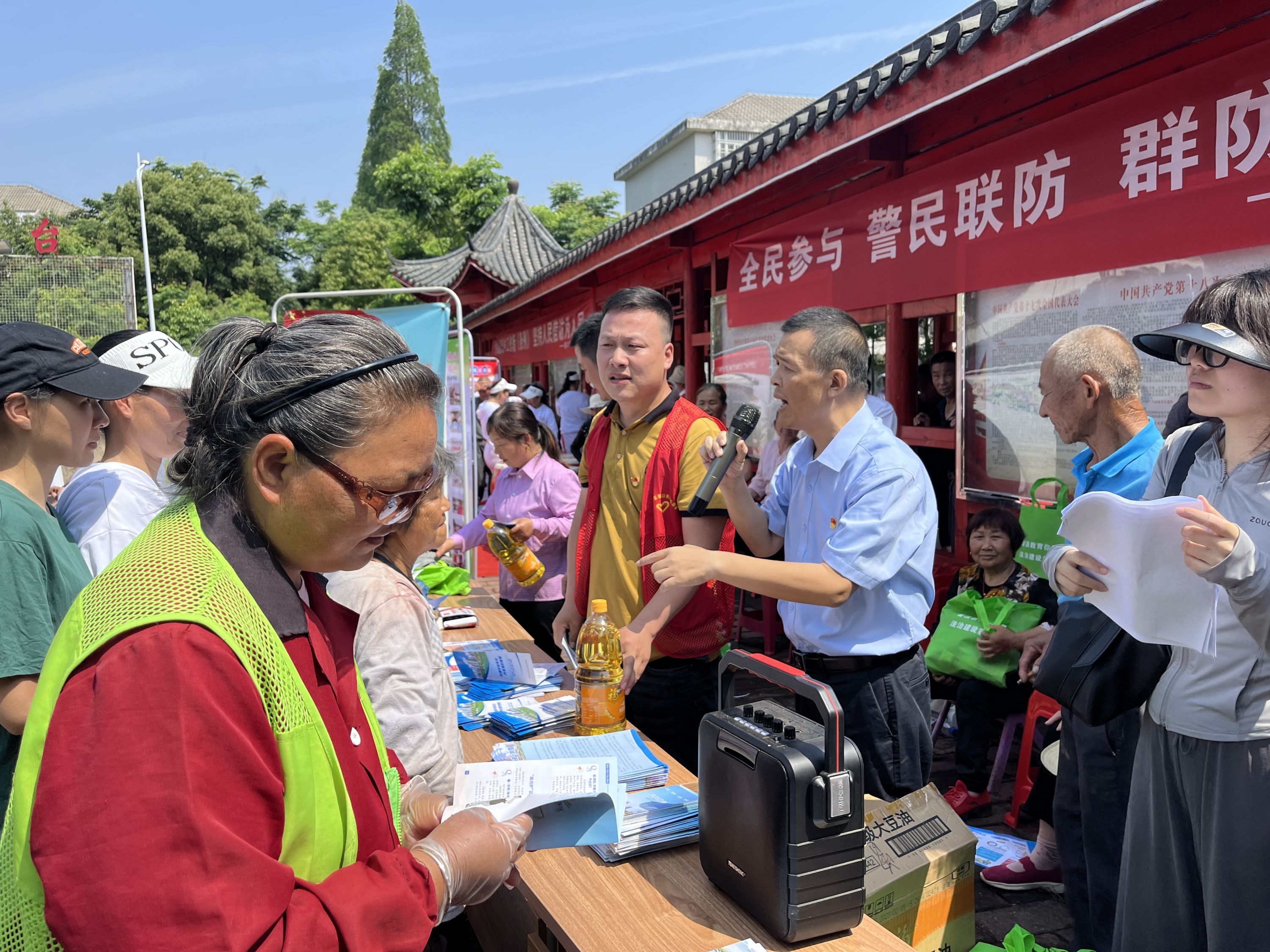室外宣传活动现场,居民将自编自演的文艺歌舞节目与平安创建工作融为一体,以群众喜闻乐见的文艺节目、现场有奖问答、说唱《垃圾分类三句半》、承诺签名墙等多种形式,突显志愿“红”、环保“橙”、警务“蓝”等共建单位的行业特点,把防火、防盗、防范打击养老诈骗、扫黑除恶等各类与日常生活相关的安全防范知识植入到群众心里,提高群众治安防范意识和自我防范能力。