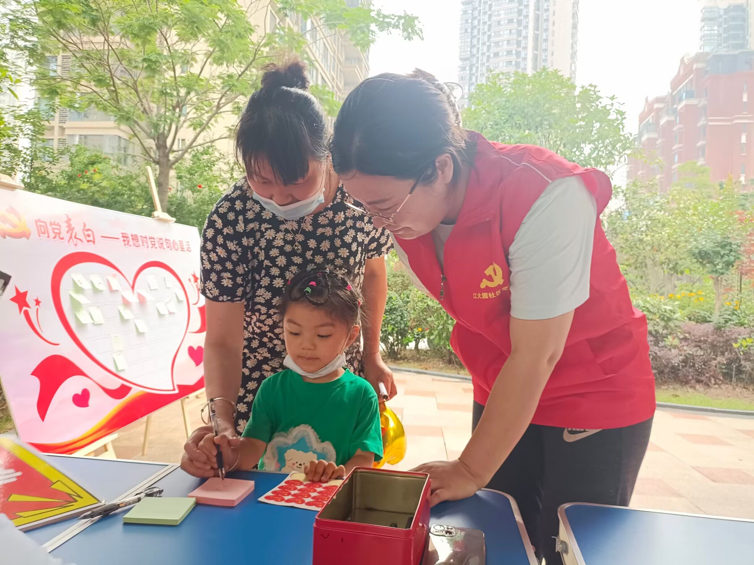 “满腔热情献给党,不忘初心跟党走,党的恩情是千秋,愿党光辉万年长!”在表白墙前,党员同志们挥笔一蹴而就,书写下对党的满腔热忱。“妈妈,这几个字我还不会写,我画个爱心可以吗?”一声稚嫩的童音吸引了现场党员的注意,虽然年幼还不会写字,在这场充满仪式感的活动中,红色的种子已经浸润童心,静待萌芽。