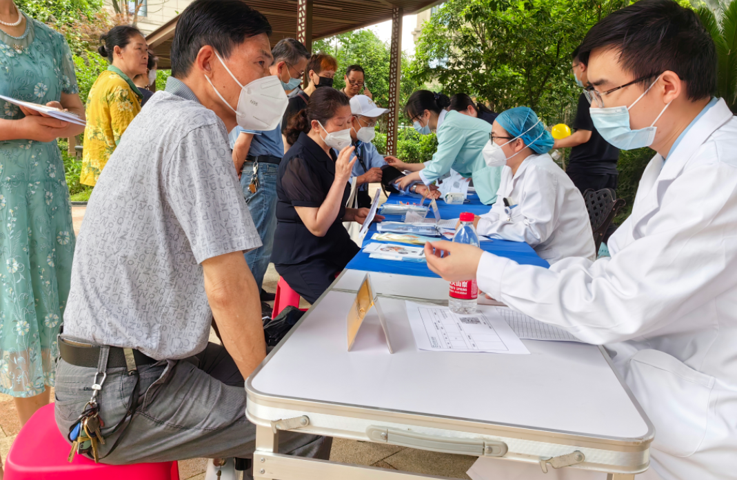 此次活动还联合亚心总医院开展健康义诊,对辖区内的居民进行血压测量和健康指导等。