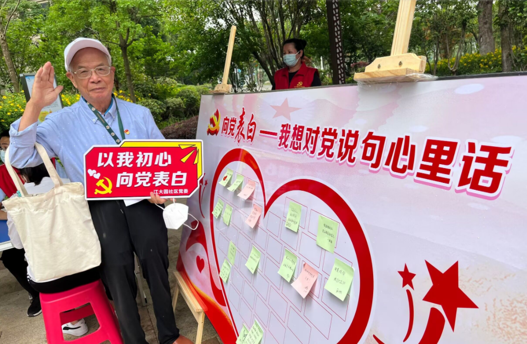 车谷融媒5月23日讯 亮党徽追忆初心,写祝福互诉衷情,答问题重温党史。5月21日上午,沌阳街道江大园社区联合亚心总医院开展了一场以“向党表白”为主题的党群同乐活动,用行动向党和祖国表白,激励广大党员发挥先锋模范作用,在平凡的岗位上尽职尽责。