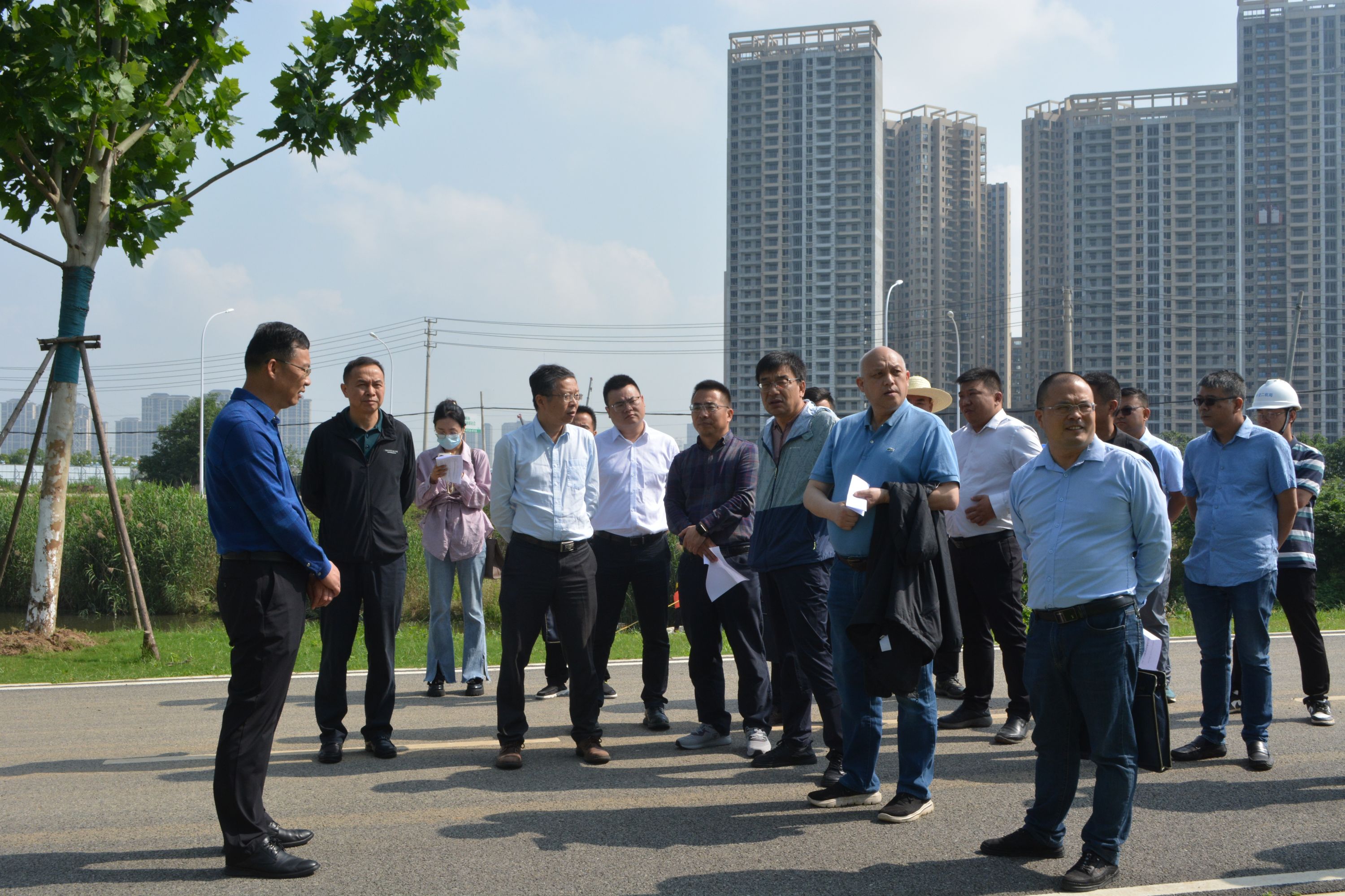 在坛山岛人工湿地公园,陈明骏查看马影河生态治理情况,与区有关部门、街道负责人研究讨论马影河综合整治重点问题解决办法。