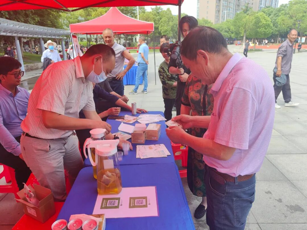 在中医养生产品体验区,武汉同济现代医药科技股份有限公司带来的中药饮品受到市民欢迎。今年60岁的周克兰刚从中医适宜技术体验区拔完火罐后来到这里品尝。“我平时也会在网上购买一些养生保健的中药饮品,今天正好可以现场购买一些。”