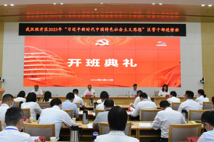 车谷融媒5月30日讯 5月29日,武汉经开区2023年“习近平新时代中国特色社会主义思想”区管干部进修班在工委党校开班。全区各园区、部门、街道、区属国有企事业单位近40名区管处级干部参加培训。工委委员、工委组织部部长、工委党校校长毛俊出席开班式并作专题辅导。