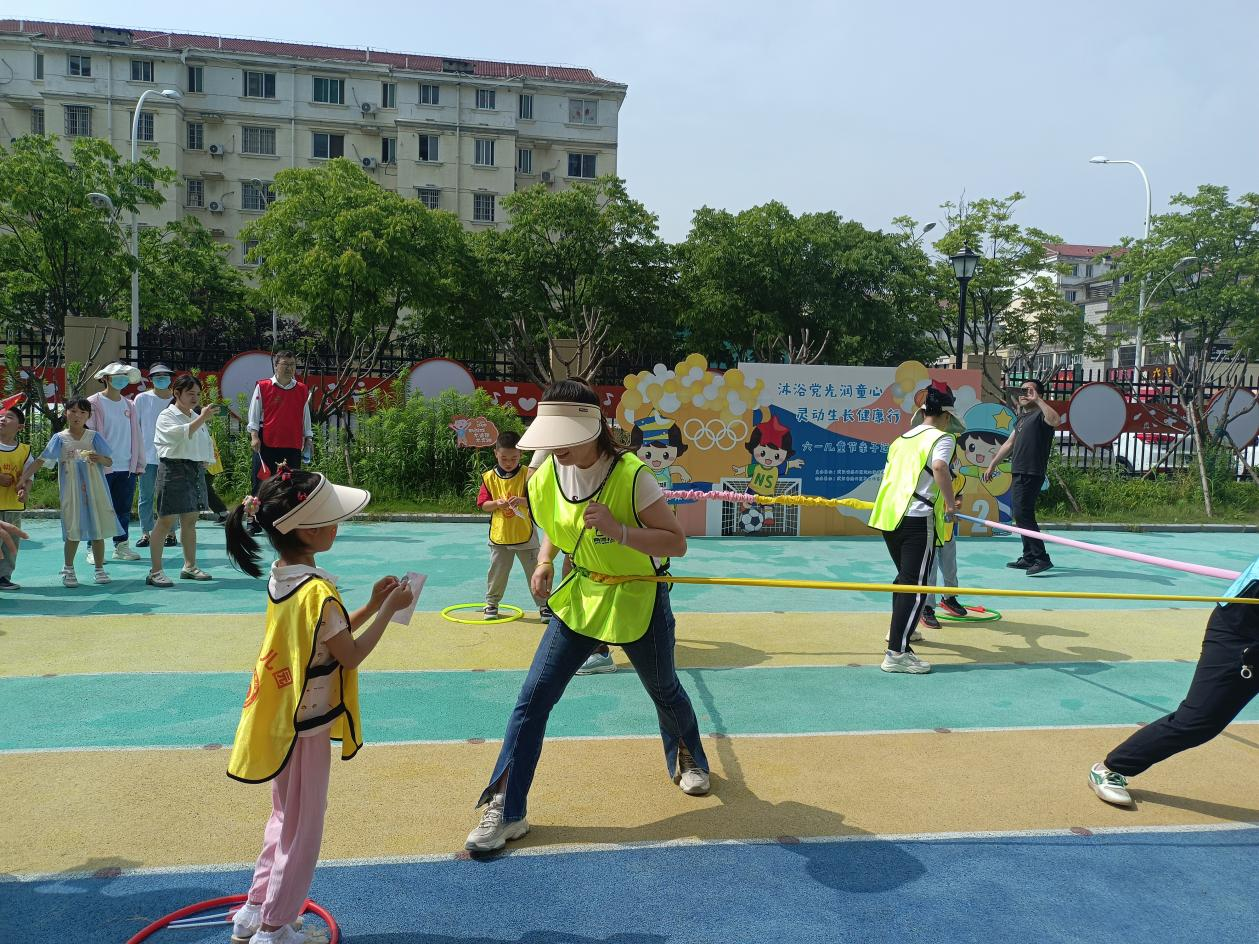 车谷融媒5月30日讯 5月27日,沌阳街南湾社区党支部联合辖区博睿幼儿园开展“沐浴党光润童心,灵动生长健康行”六一亲子趣味运动会。