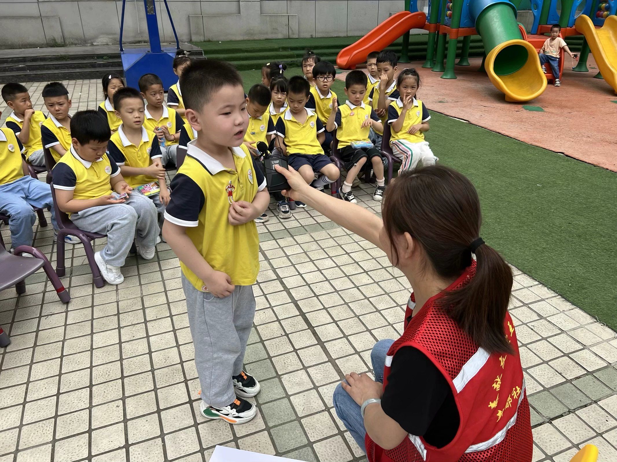 活动现场,吉祥国际幼儿园小朋友认真地讨论着生活中存在的危险,以及如何远离危险、身处危险时该如何寻求帮助等。同时,消防安全“你问我答”环节,大家结合实际案例,现场复盘应该注意的安全事项,通过表演和讨论,增强安全意识、筑牢安全防线。