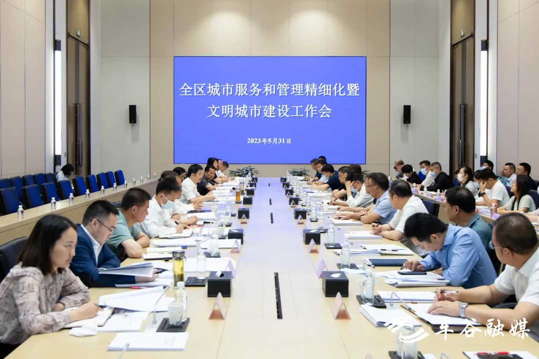 车谷融媒5月31日讯 5月31日,武汉经开区召开全区城市服务和管理精细化暨文明城市建设工作会议,对城市精细化管理、文明城市建设相关工作进行再部署、再动员。工委副书记、管委会主任唐超主持会议。