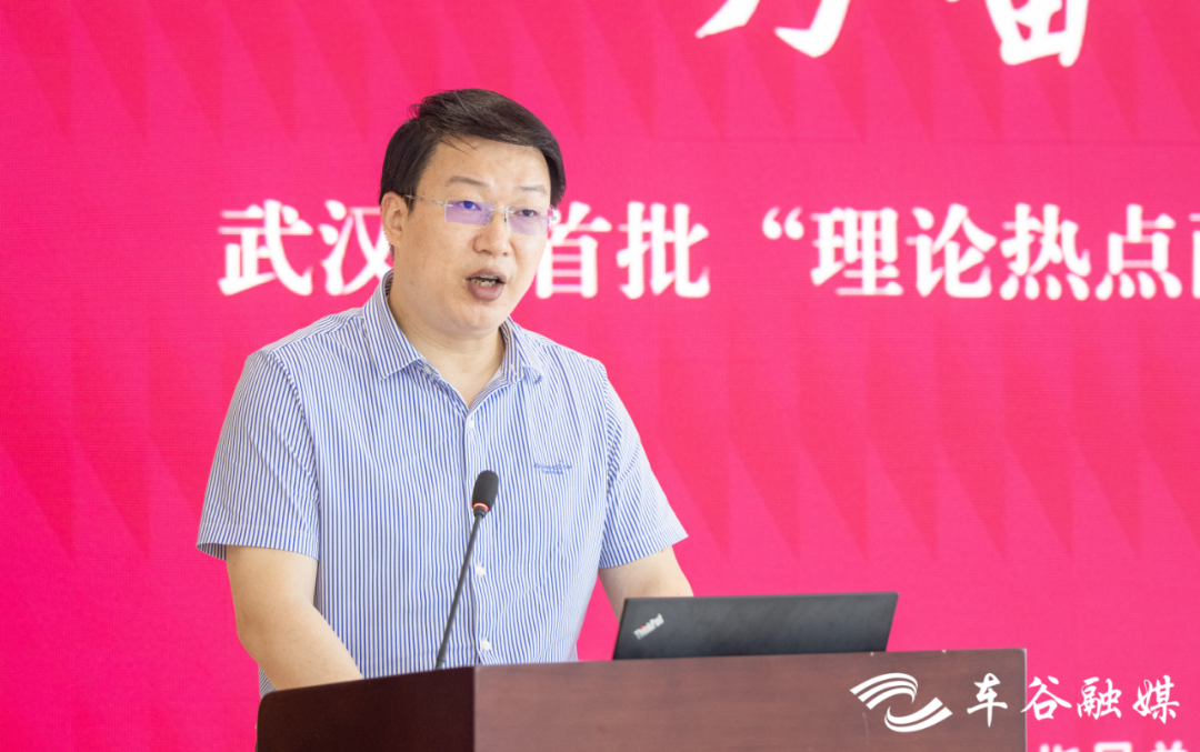 市委宣传部副部长、市社科联主席吴天勇出席活动,并为“理论热点面对面实践基地”授牌,华中科技大学党委宣传部常务副部长詹健、区有关领导参加活动。