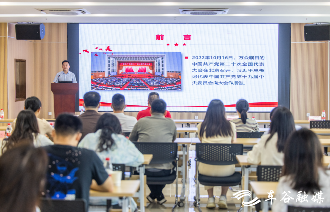 授牌仪式结束后,华中科技大学马克思主义学院副院长李建国以“学习贯彻党的二十大精神,努力实现高水平科技自立自强”为题,向园区企业职工代表作理论宣讲。