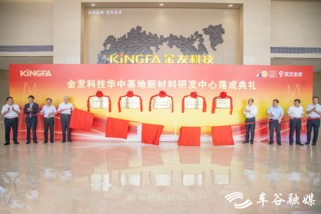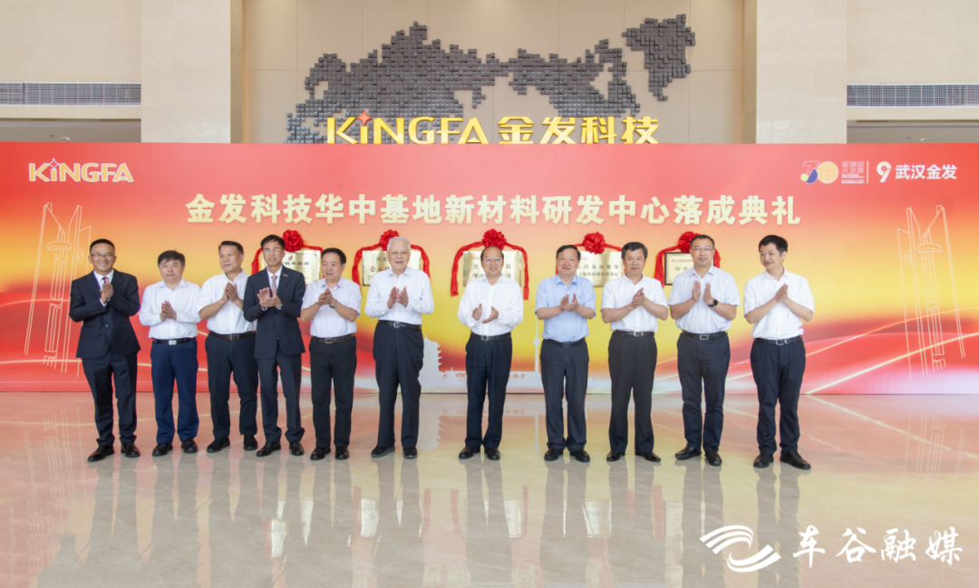 中国工程院院士汪旭光、瞿金平、张联盟,市委常委、武汉经开区工委书记刘子清,湖北省经济和信息化厅二级巡视员许甫良,湖北省科学技术厅二级巡视员吴月朗,华中科技大学党委常委、副校长解孝林,武汉经开区工委副书记、管委会主任唐超,金发科技股份有限公司党委书记、总经理李南京,金发科技股份有限公司首席战略官李建军为金发科技华中基地新材料研发中心揭牌。