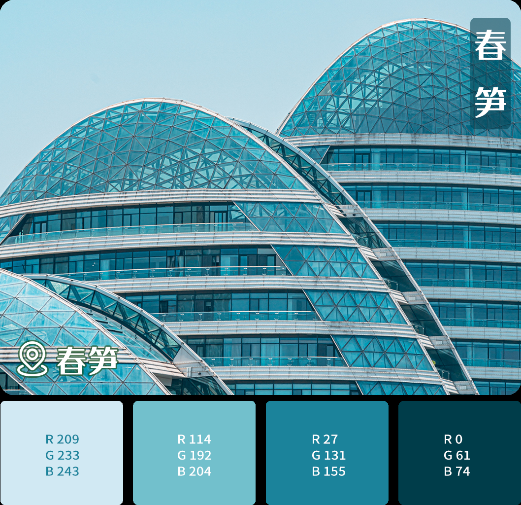 5个建筑好像破土而出的巨型春笋扎根在公园一角,每当阳光透过三角网格切割洒下,天空和春笋恍若共生,好似一幅画卷流淌出天蓝色的温柔。