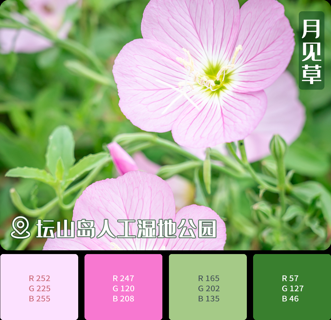 月见草花瓣薄能透光,自带飘飘仙气,漫步在坛山岛人工湿地公园,恰似走入了梦幻的童话世界。