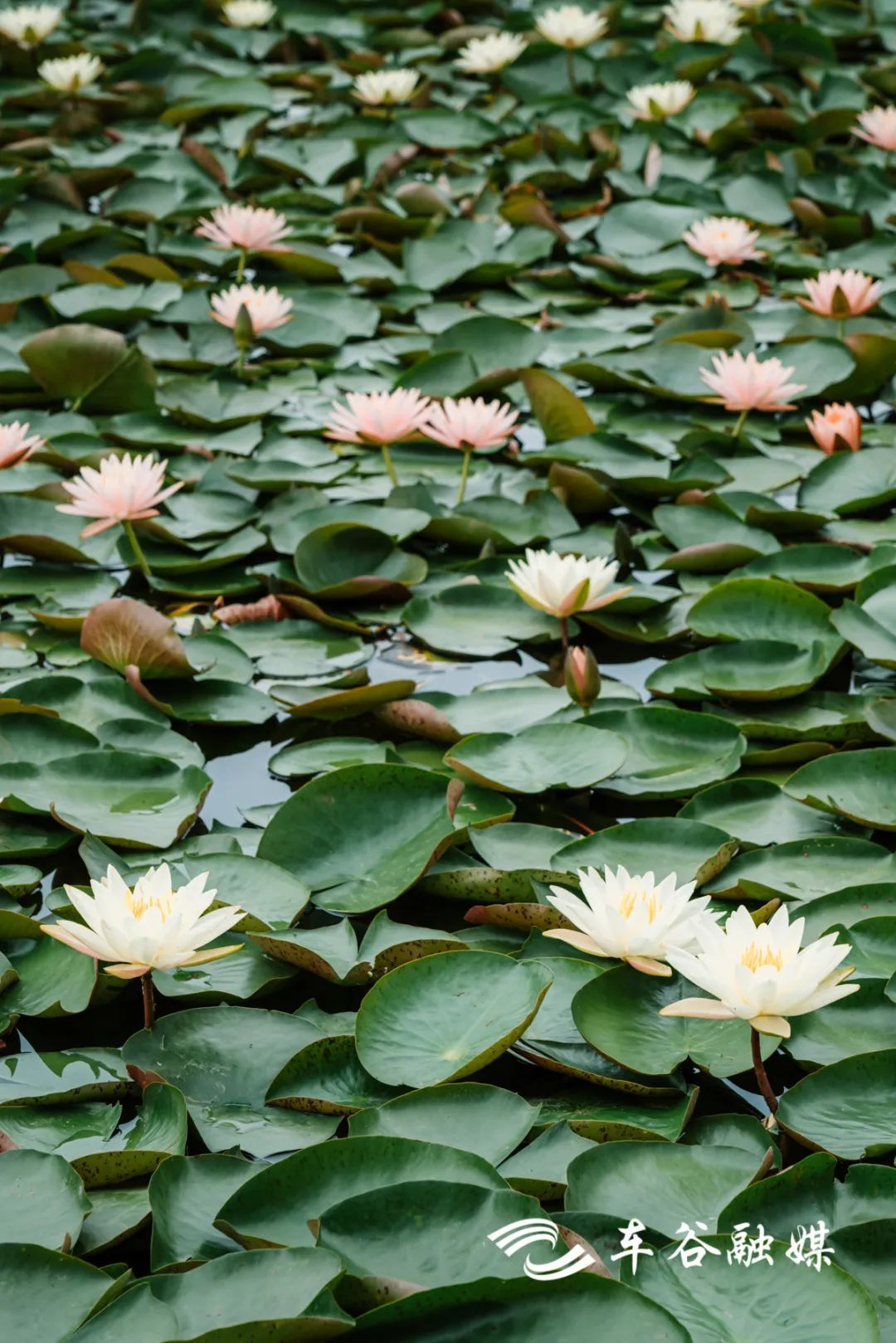 嫩黄、淡粉、肉橘、白色……各种颜色的花瓣在水中盈盈舒展,在碧水绿叶中绘出独属于夏日的美景画卷,简直就是家门口的“莫奈花园”!