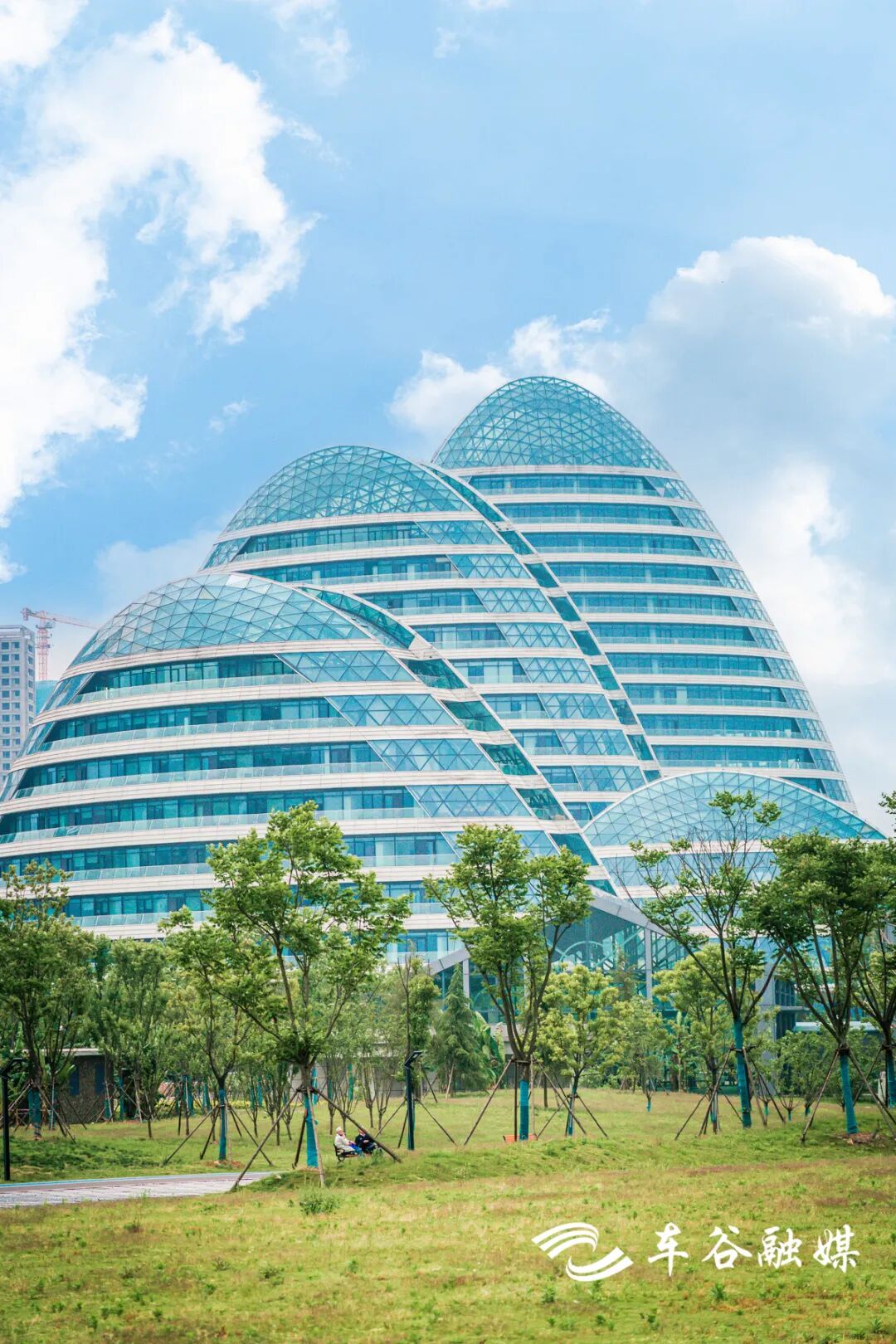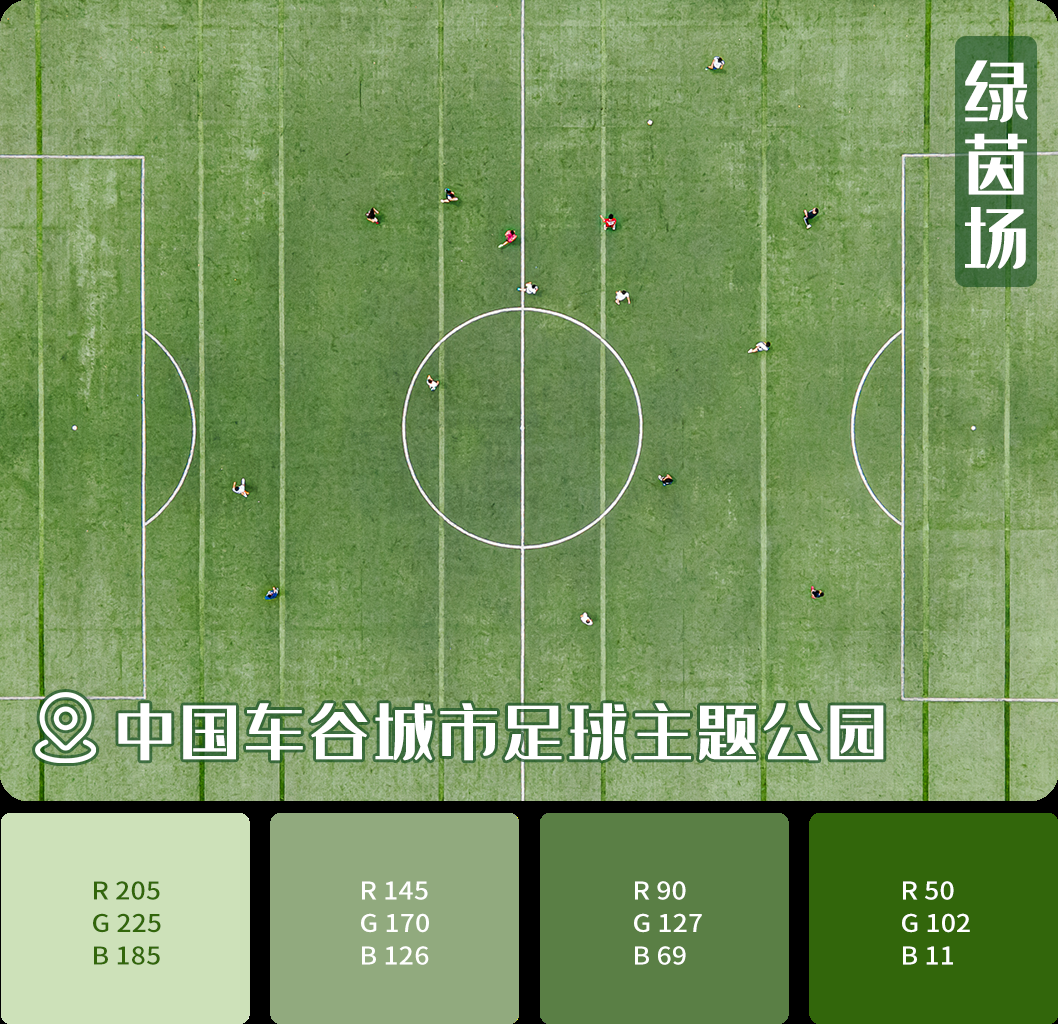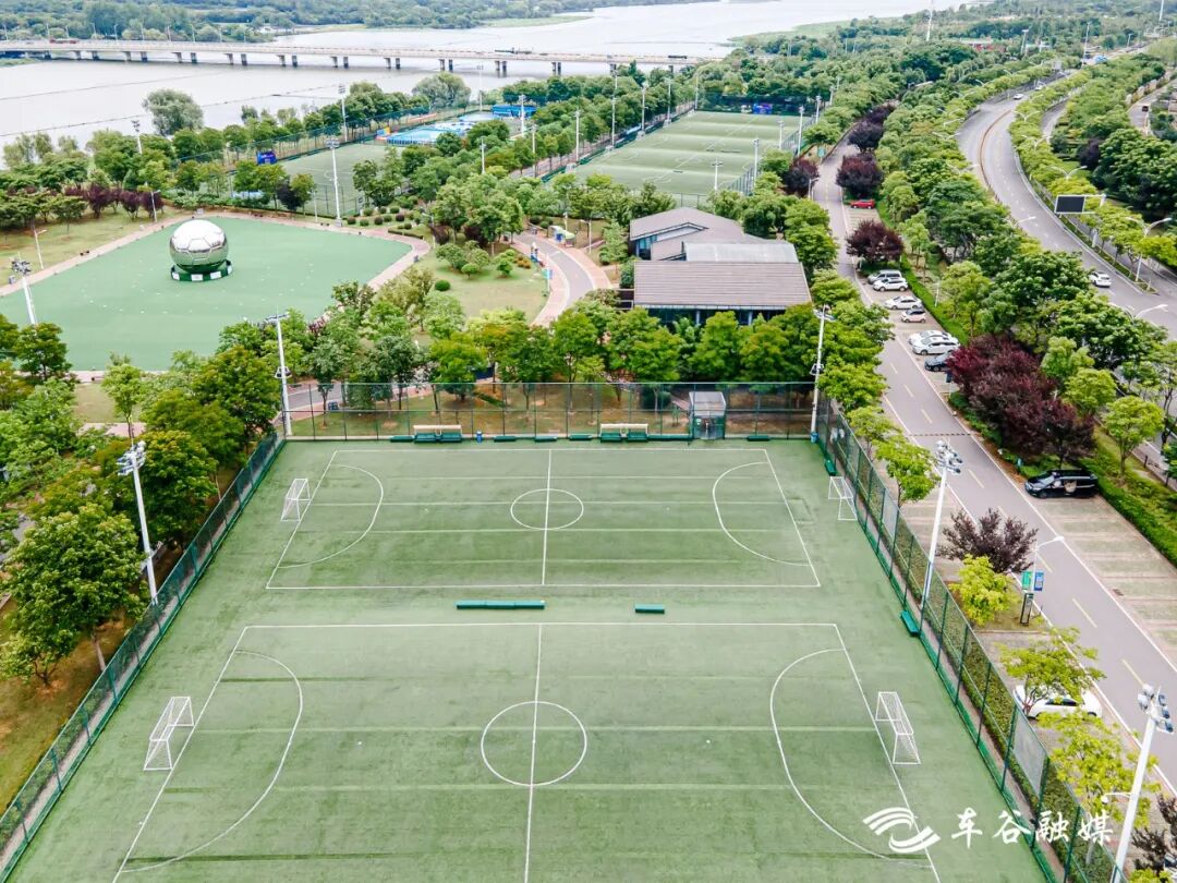 华中地区单体规模最大、功能最全、配套设施最佳、生态环境最佳的中国车谷城市足球公园,俯瞰的视角下宛如一大块绿色绒布,落在南太子湖畔,构建出夏日最活力的一笔色彩。