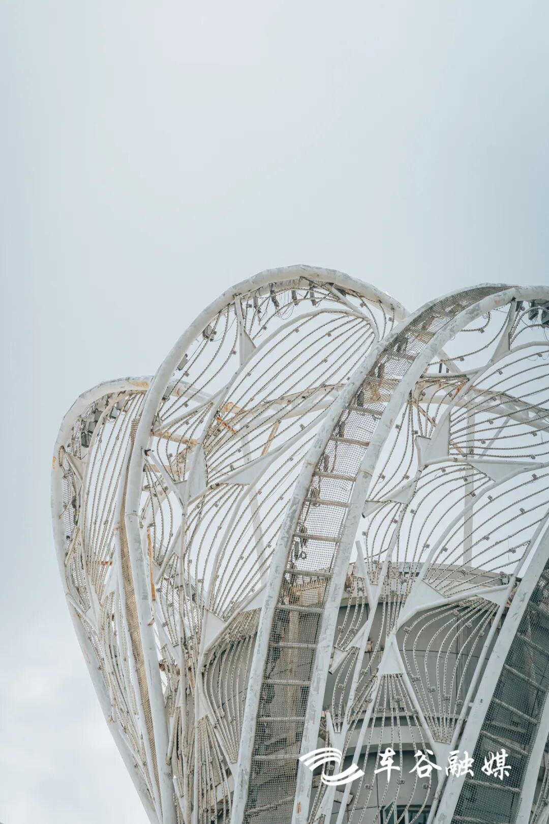 主体育场的美不止在人声鼎沸的夜晚,也在每一个充满运动活力的白天。白色钢材交汇成椭圆形,巨大的花朵从足球场开放到天边。