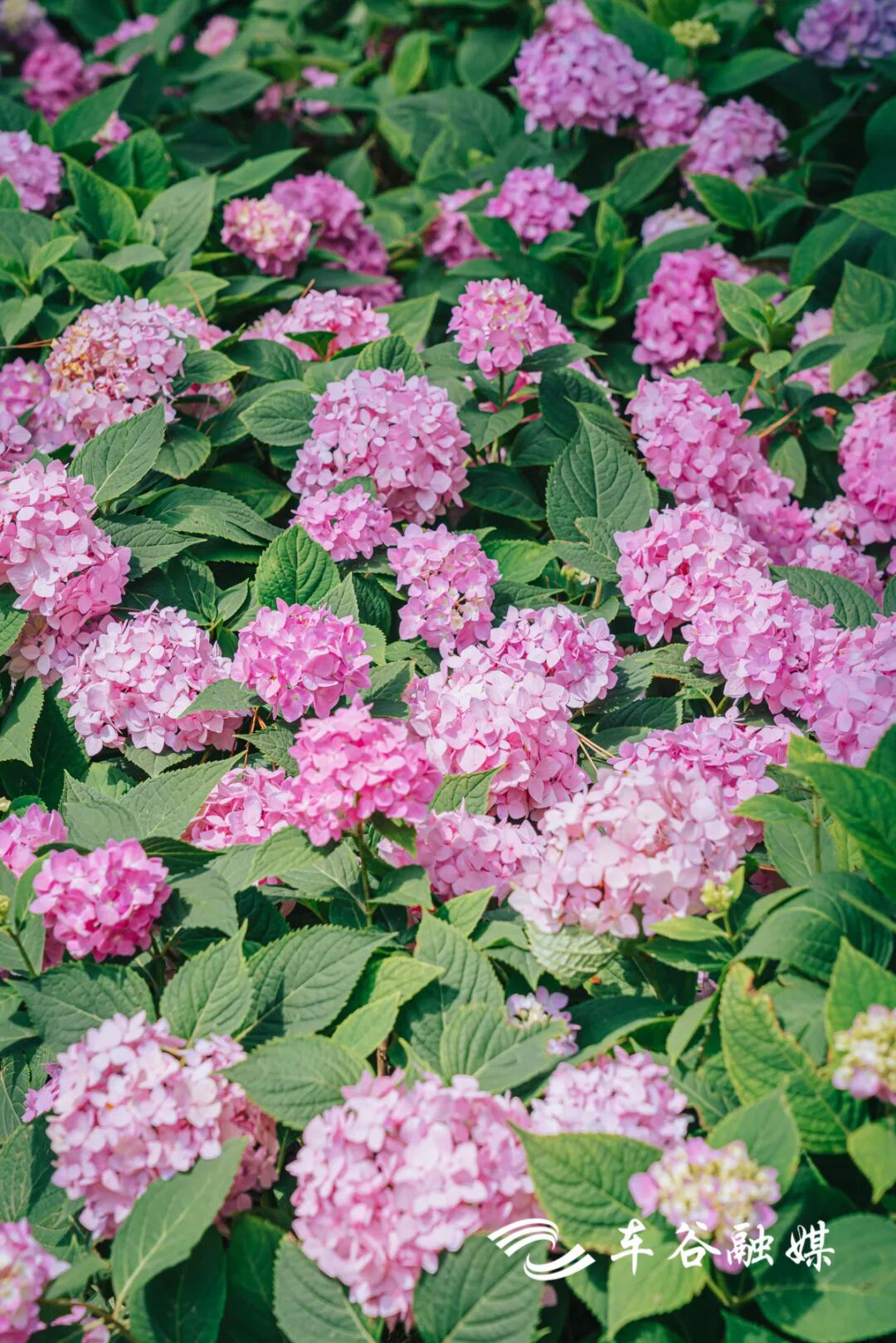 除了娇艳的粉色,还有优雅的蓝、浪漫洋红、纯净的粉白,不同色彩的绣球花织就锦绣花海,绽放出此时最迷人的笑颜。