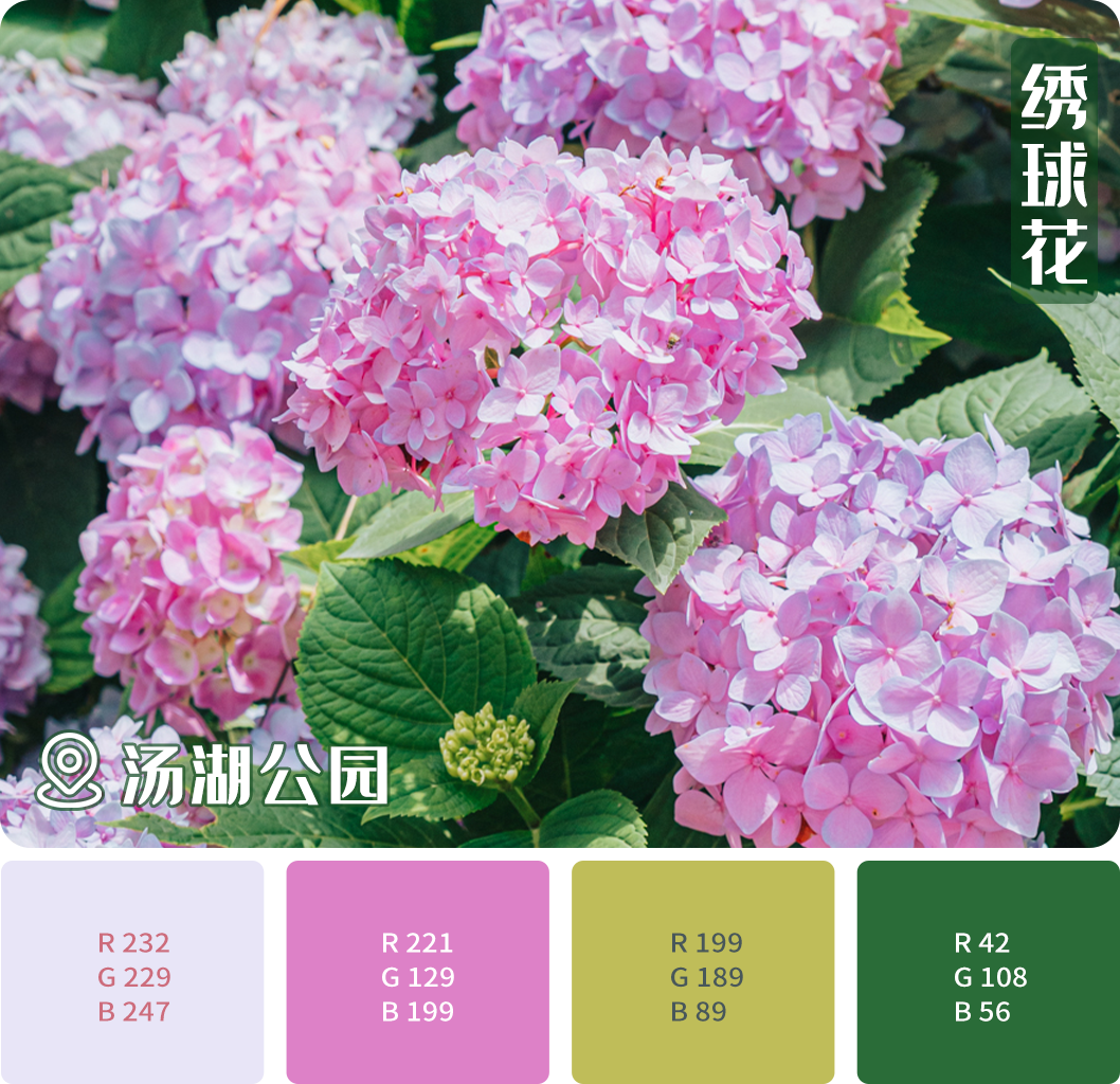 汤湖公园总能给予惊喜,因为绣球花的放开再度迎来游园高峰。一朵朵小花彼此簇拥着盛放,粉蓝相间,十分梦幻,不愧是这个时节的C位主角!
