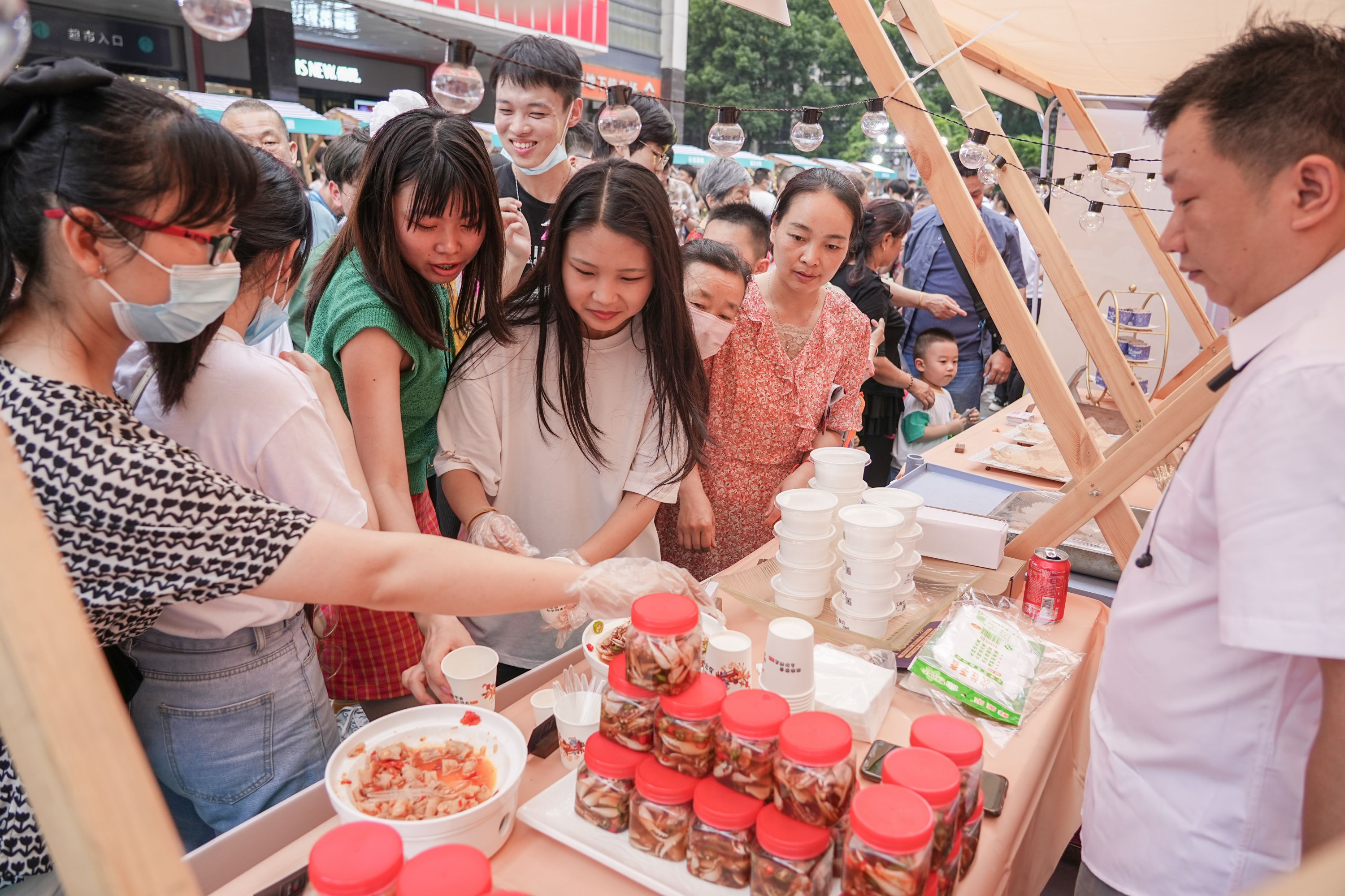 活动现场,不少居民一边试吃、一边点赞、一边拍照,还不忘购买美食与亲朋好友分享,更有居民主动询问店铺地址,期待着下次进店消费。“第一次尝试用这样的方式展销,让大家品尝我们店铺的美食特色,今天不少人向我询问店铺位置,来购买商品。”商户李老板激动地说。