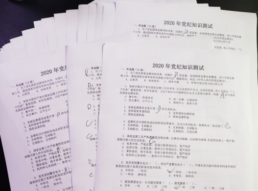 支部活动结束前,全体党员进行了党纪知识测试,以考促学、以考促廉的形式传播廉政知识文化,使广大党员干部进一步熟知和掌握党纪政纪法规,增强党性观念、纪律观念和法治观念。