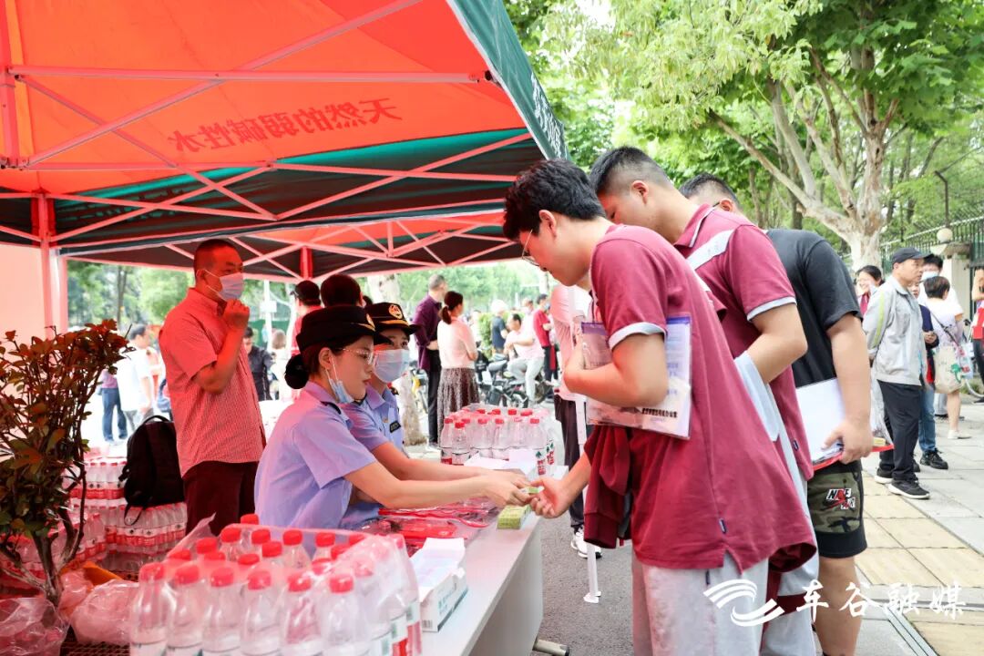 沌阳街综合执法中心在考点旁设置爱心驿站和心愿墙,免费向考生发放考试用品、矿泉水、医疗急救包。不少家长在爱心墙上写下“长风破浪会有时,直挂云帆济沧海”“知汝十年磨一剑,一朝飞出虹云端”“加油,你最棒!”等祝福话语。