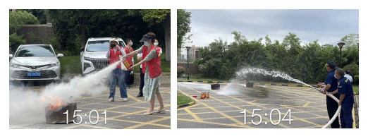 白天演练中,消防队员详细地讲解与示范了正确使用灭火器的方法、灭火的正确流程、如何疏散被困人员等消防知识,帮助大家认识了不同种类的消防器材并掌握了使用方法,现场指导了消防服的穿戴。通过现场模拟火情,全员参与灭火实操演练,让参与演练的每个人真正掌握扑灭火情的正确方法。