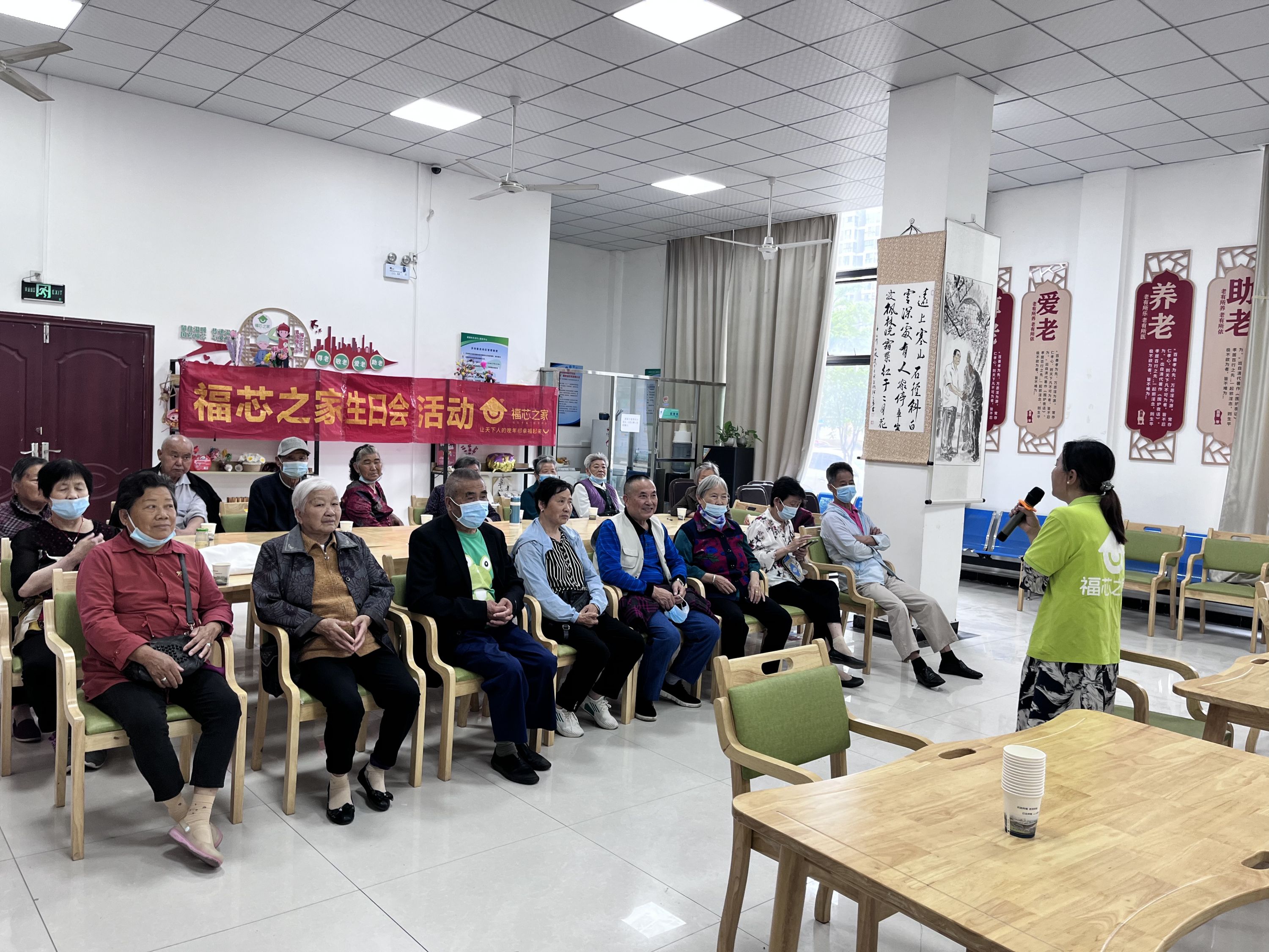 老人们借着集体生日会的舞台,展示自己的才艺,献唱歌曲。福芯之家工作人员为寿星们准备了蛋糕、水果、面包,同老人们一起吹蜡烛,为寿星们送去最真诚、最温馨的祝福。