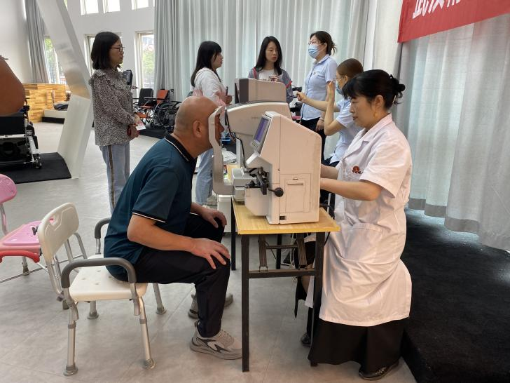 武汉精益眼镜公司专家围绕近视及屈光不正、白内障、眼底病、青光眼、角膜盲等重点眼病,为社区居民及残疾人普及眼健康知识,提供眼部视力筛查义诊服务,倡导关注全年龄段全生命周期眼健康的重要意义。辅具站的工作人员对视力障碍者常用辅具进行介绍和使用指导。