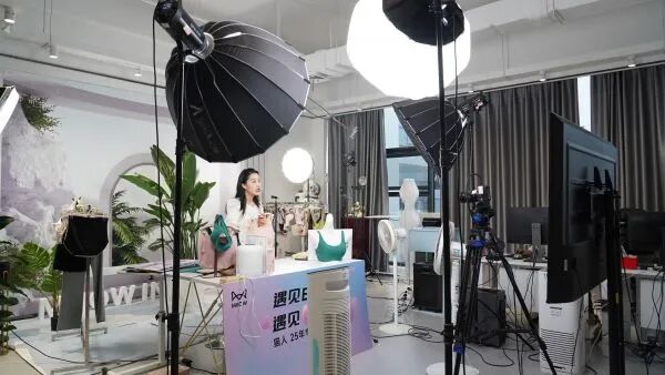 ▲位于武汉经开区的猫人时尚产业园,主播正在直播带货。