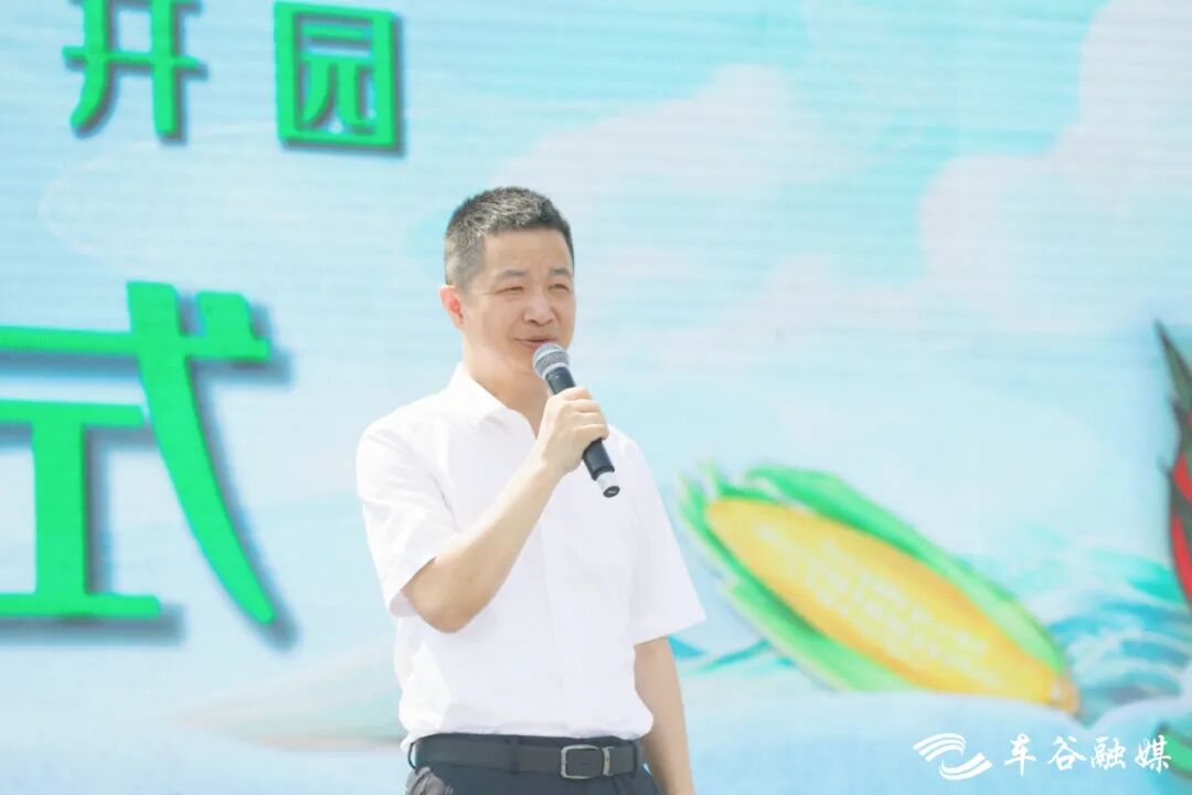 工委副书记、管委会主任唐超宣布甜玉米采摘开园。湖北省农科院总农艺师梅书棋,省种子集团有限公司总经理邵仁学,市农业农村局副局长汤吉超,市供销合作总社副主任李黎,市农科院总农艺师钱运国,中国人保财险湖北省分公司业务总监、武汉市分公司党委委员、副总经理陶俊明,区政协主席徐安,工委副书记黄元峰出席活动。