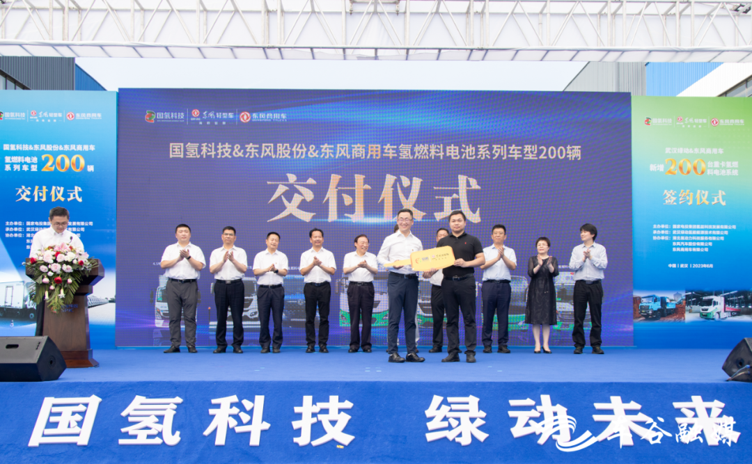 现场,国家电投武汉绿动氢能能源技术有限公司与东风商用车200台重卡燃料电池系统的新订单同步签约。