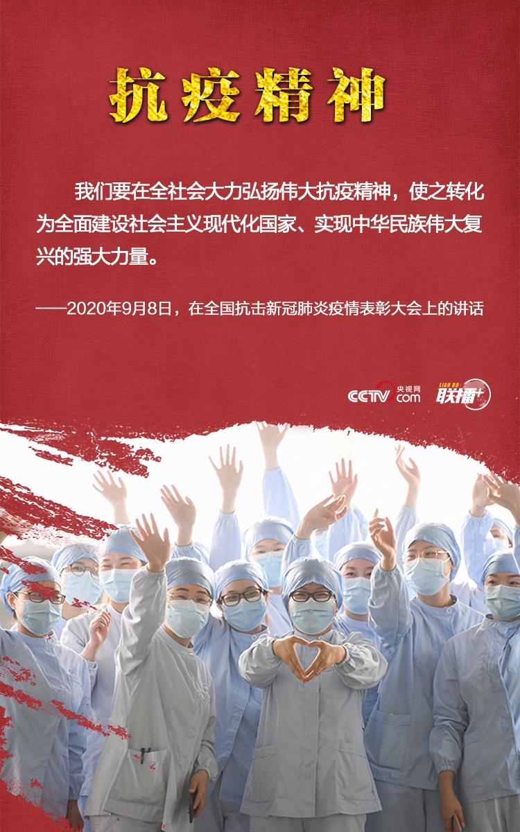 联播+ :“人无精神则不立,国无精神则不强。唯有精神上站得住、站得稳,一个民族才能在历史洪流中屹立不倒、挺立潮头。”日前,在全国抗击新冠肺炎疫情表彰大会上,习近平总书记发表近万字的长篇讲话,要求“在全社会大力弘扬伟大抗疫精神”。